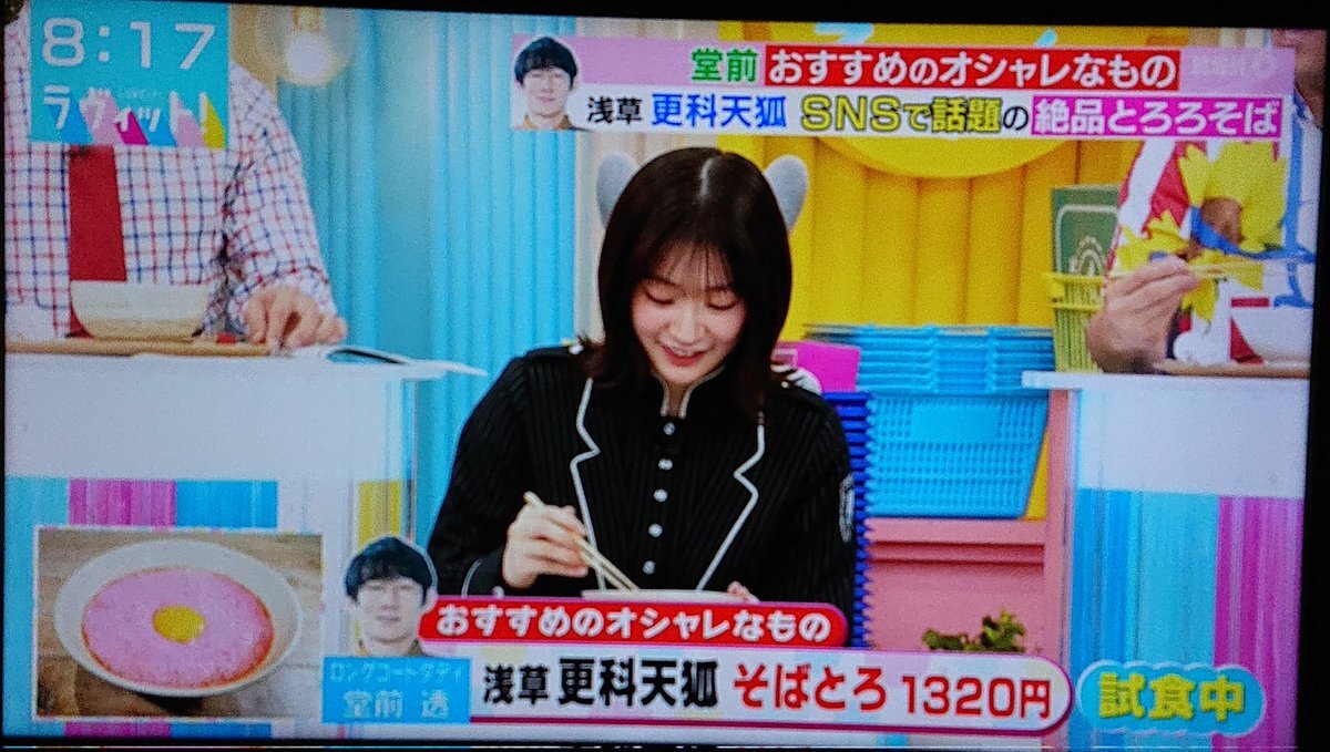 皆で“更科天狐”のそばとろを食べる😊 実家がそば屋の森田さん「実家よりうまい!」 家族観てたら突っ込まれるよ😅 森田さんの“田園ゲーム”紹介中に黙々そばとろ食べる堂前さん草😁 #ラヴィット #櫻坂46 #小島凪紗 #さらば青春の光 #森田哲矢 #ロングコートダディ #堂前透 pic.x.com/yYE7LD2TfB