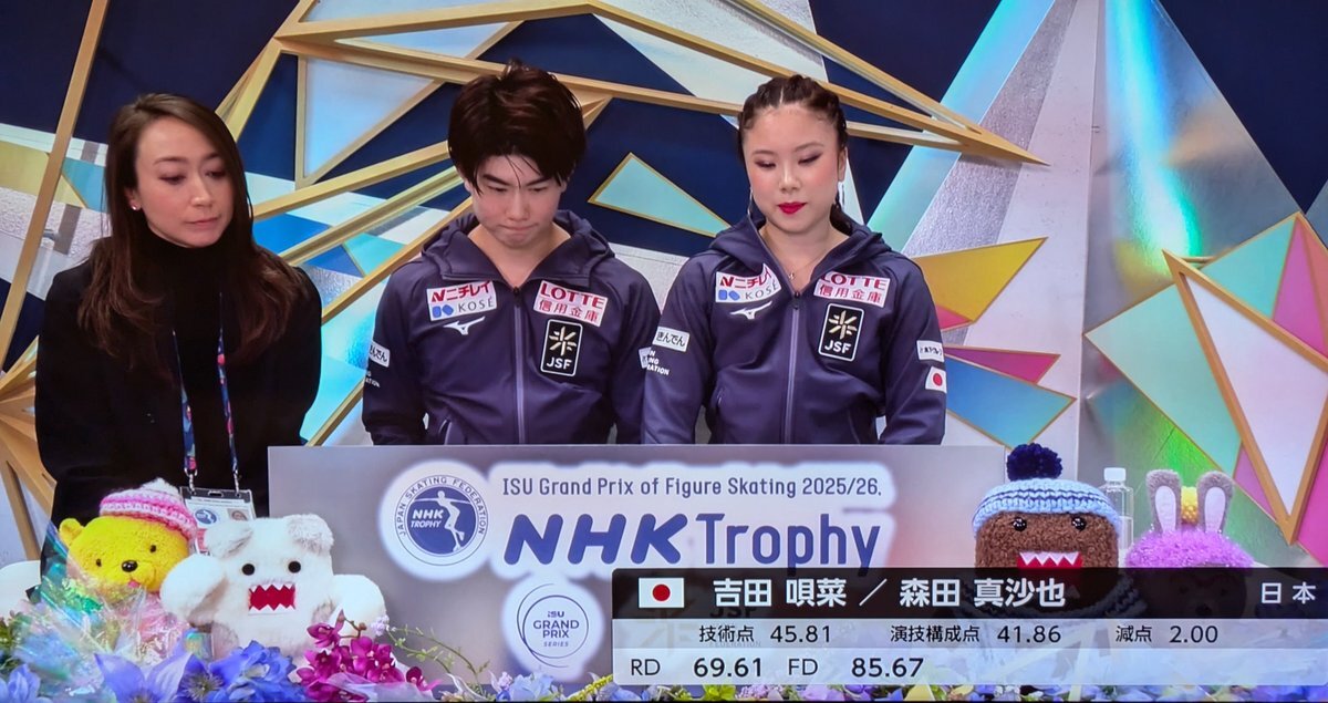 #フィギュアスケート のGPシリーズ第4戦 #NHK杯 大阪府門真市の東和薬品ラクタブドームで行われています。 アイスダンスのリズムダンス(RD)で #吉田唄菜#森田真沙也 組(ともに木下アカデミー)は69・61点で8位発進 sankei.com/article/202511… pic.x.com/coCxzytHVL