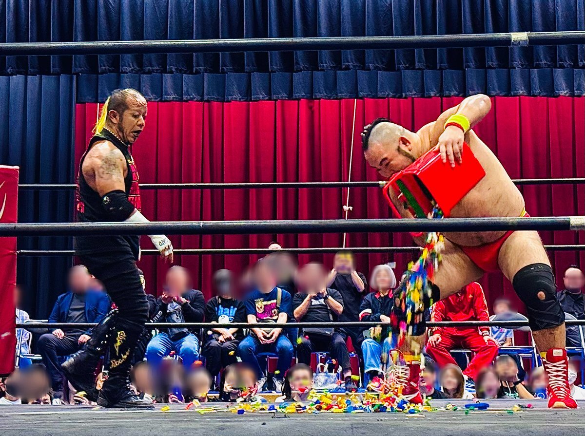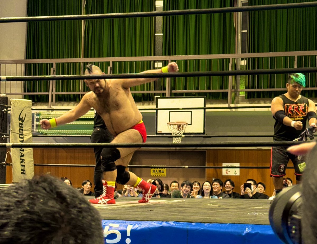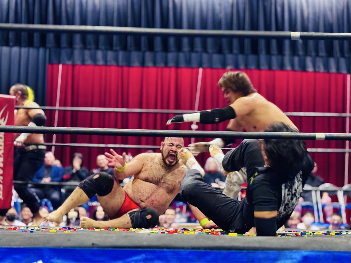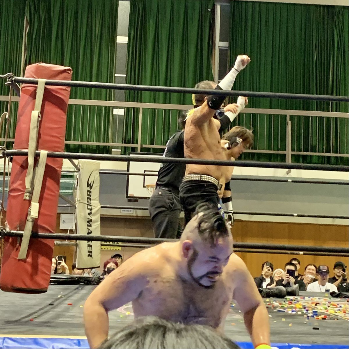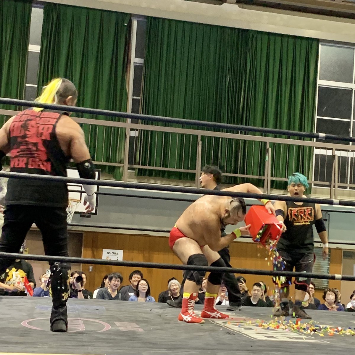 ブロック玩具が散らばるリングへ向け パールハーバースプラッシュ💦 植木さんのやられっぷり大好き🤣❣️ (2025.10.19 アクティブ・スクウェア・大東) #pw_freedoms #葛西純 #植木嵩行 pic.x.com/fYeKnhqQCv