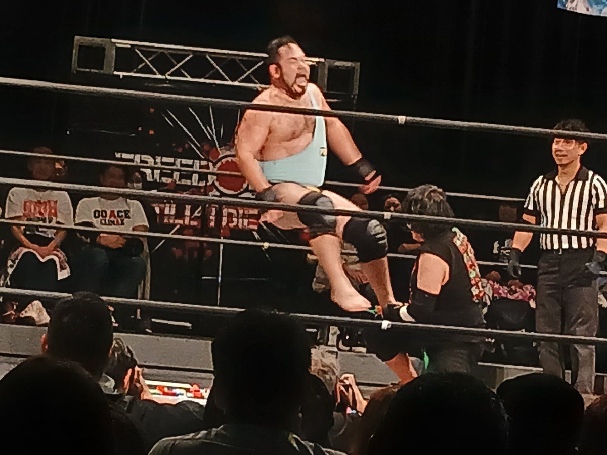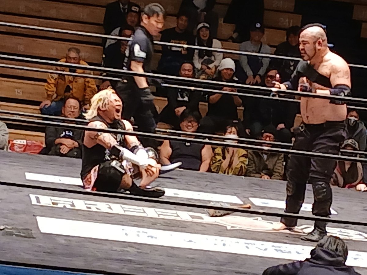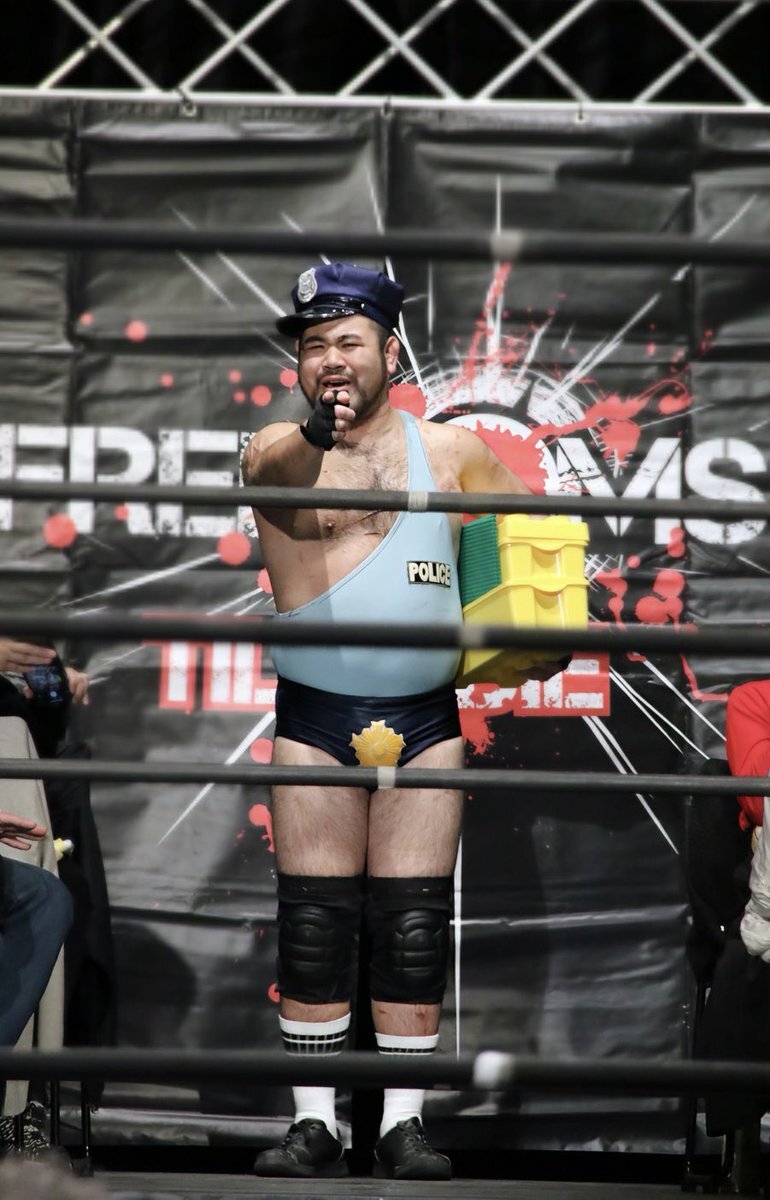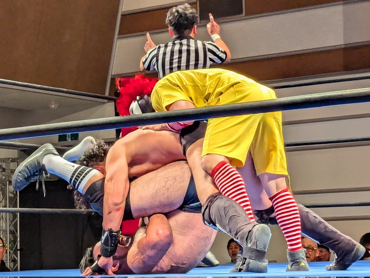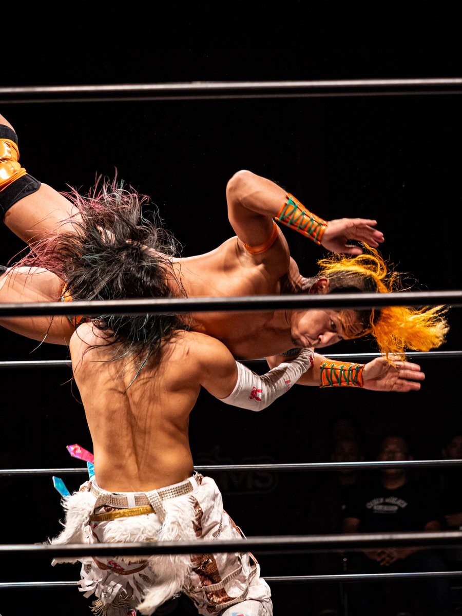 吉野さんを投げようとして失敗、飛び越えた先にはLEGO...!!! ムキムキレフェリーが強過ぎる😂😂 #植木嵩行 選手 #吉野恵悟 レフェリー 2025.10.19 #pw_freedoms pic.x.com/ZktvKxpLU7
