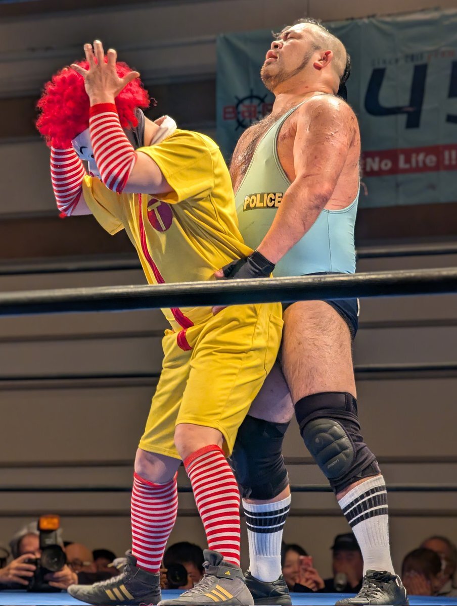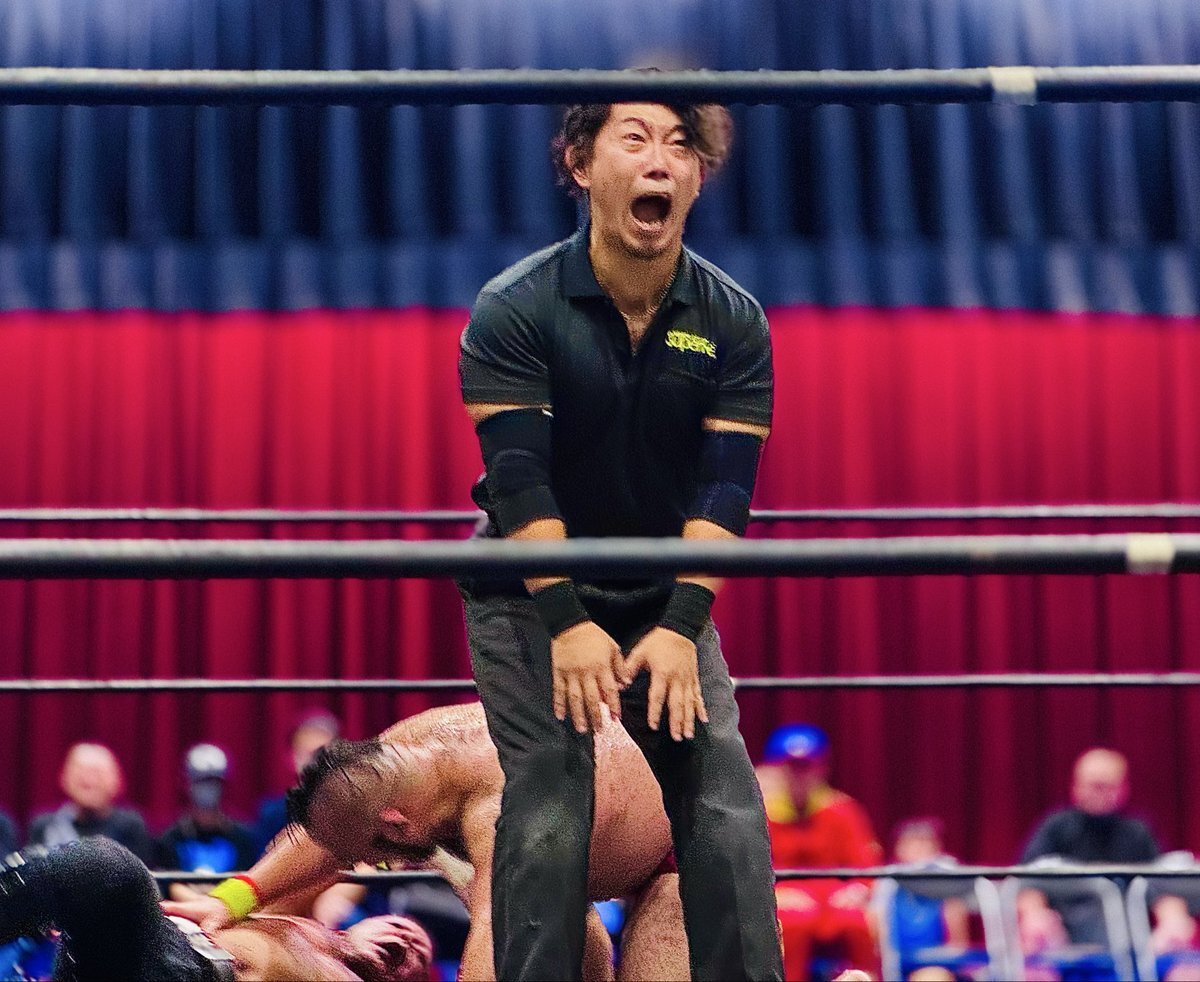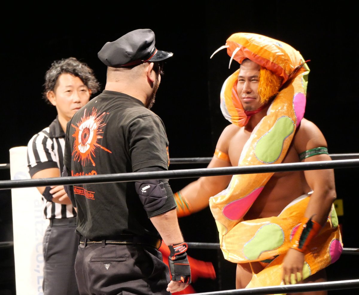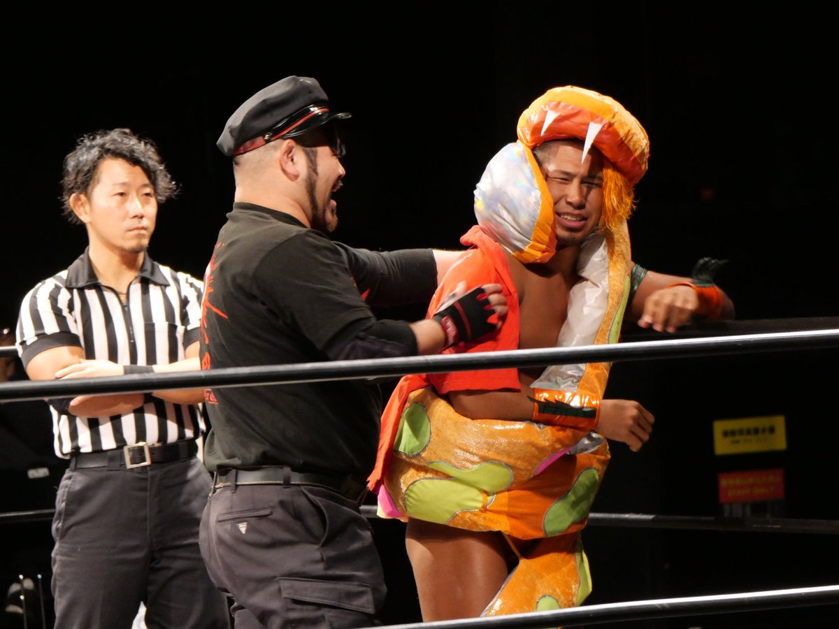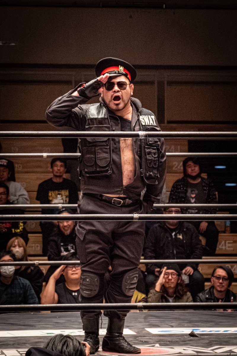 吉野さんを投げようとして失敗、飛び越えた先にはLEGO...!!! ムキムキレフェリーが強過ぎる😂😂 #植木嵩行 選手 #吉野恵悟 レフェリー 2025.10.19 #pw_freedoms pic.x.com/ZktvKxpLU7