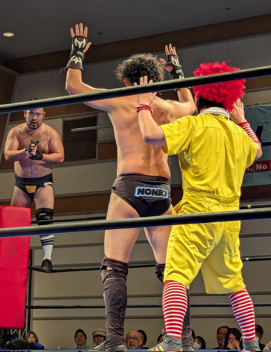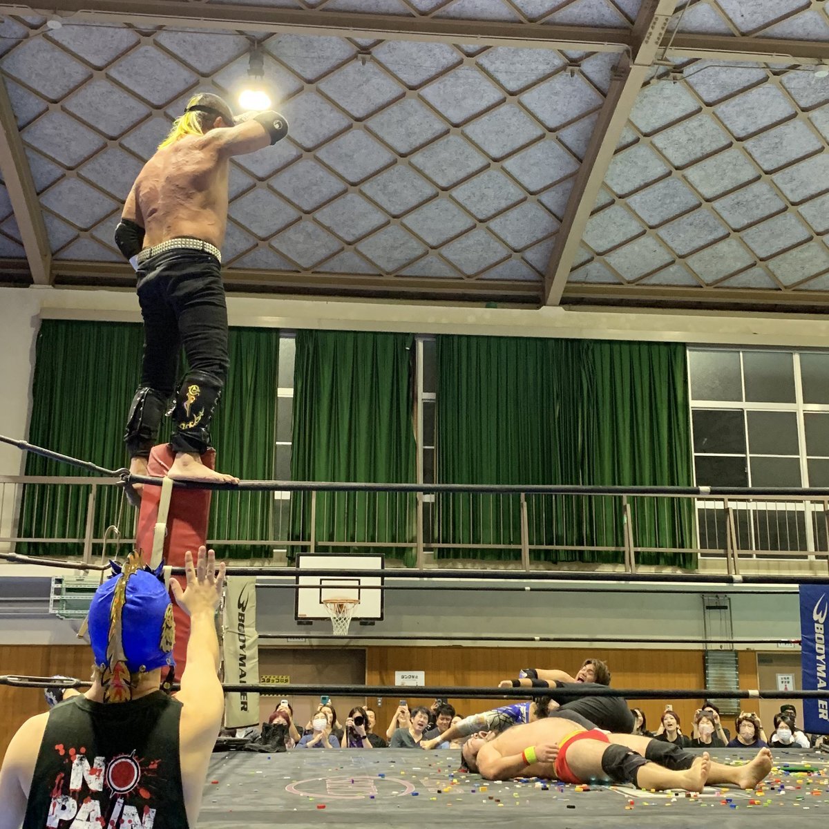 「推しに魅入ってたら試合が終わってた」って感覚これか 正岡さんが脱がされてたことと試合後に普段しないこと(コーナー登る)をして普段踏まないものを踏んだ(足つぼマット)ことしか記憶にないぞ #pw_freedoms #正岡大介 #植木嵩行 #最上九 #さくだとしゆき pic.x.com/ehLMIm6ibi