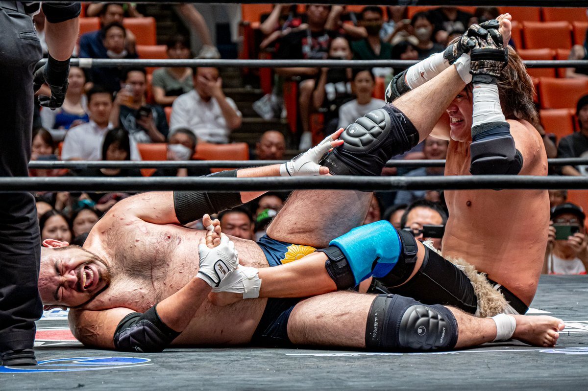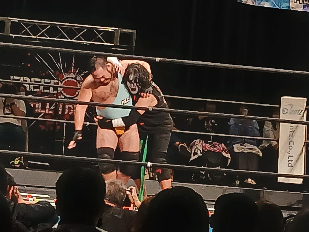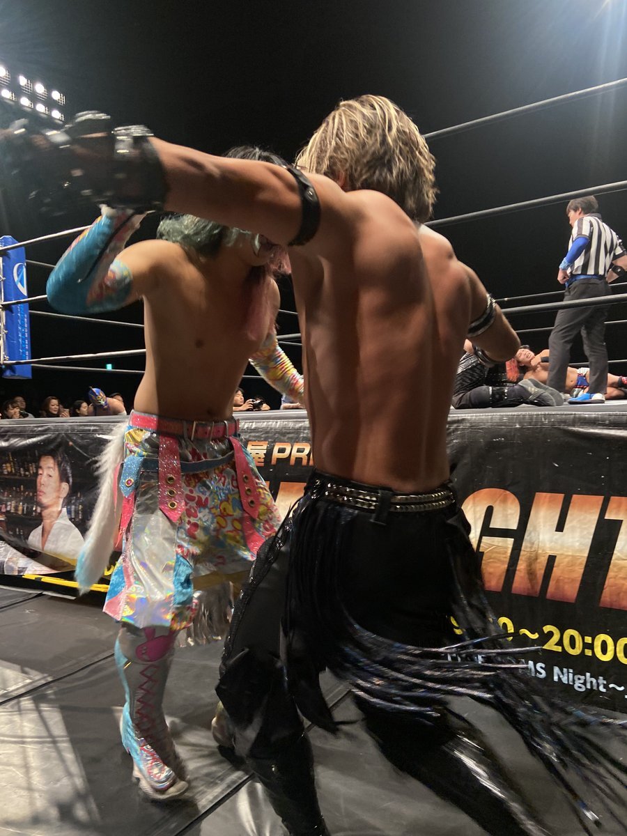 大阪は私の好きな植木さくタッグが見れる率高いんでありがたいです🙏今回二人並んでるのがこのぶちかまされてる写真くらいしか無いんですけど… #さくだとしゆき #植木嵩行 #pw_freedoms pic.x.com/Vl3W7bYOdt