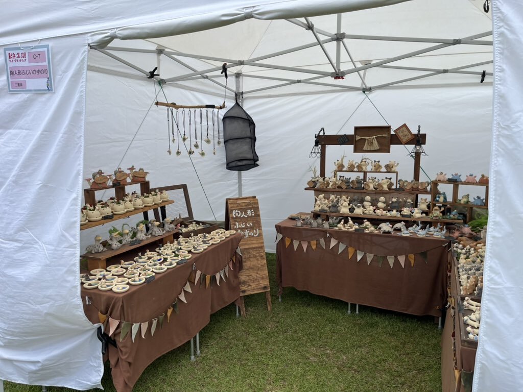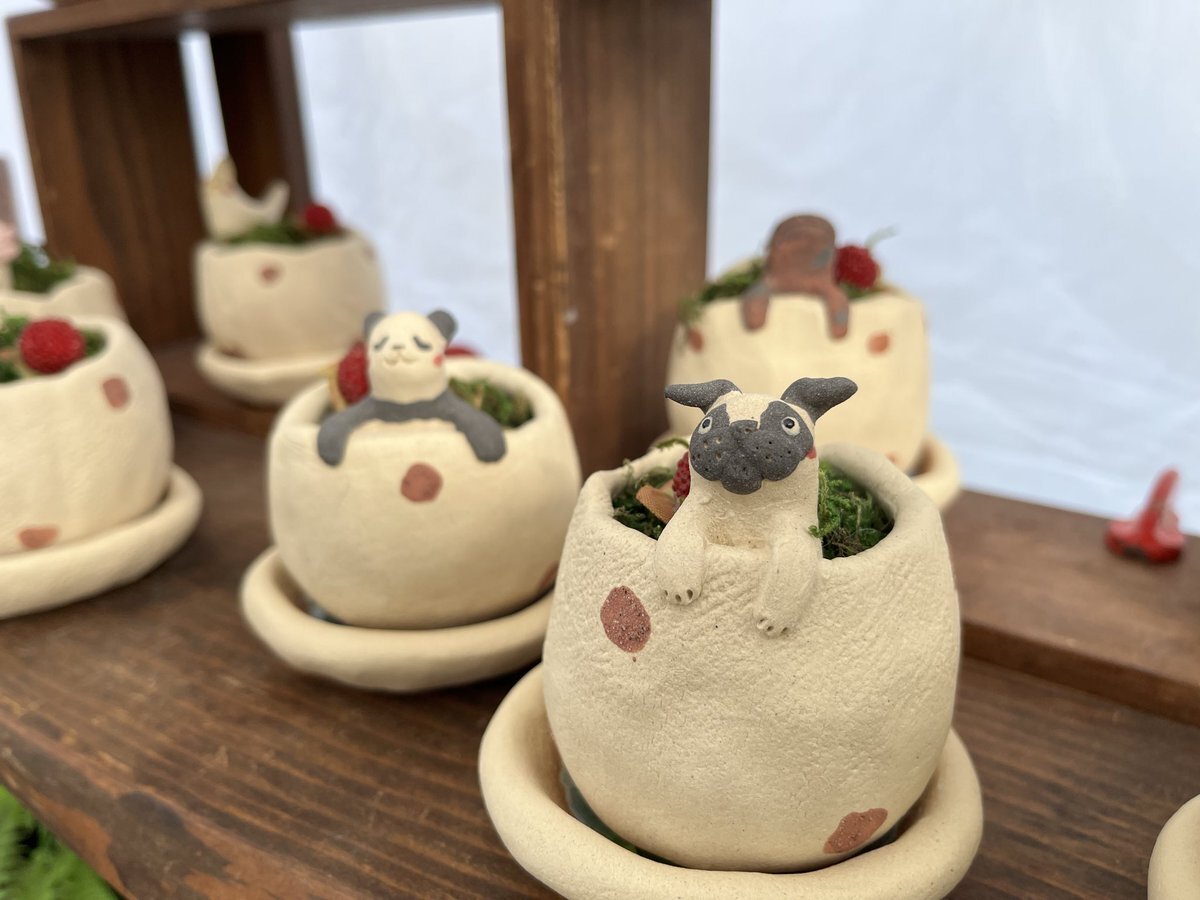 浜名湖アートクラフトフェア ぼちぼち始まります 生憎の雨降りですが 涼しいですよ ぜひぜひ見に来てくださいね hamanako-craft.com #陶人形ふじいかずのり #陶人形 #クラフト #浜名湖ガーデンパーク #浜名湖アートクラフトフェア #植木鉢 #ブル #シュナウザー #メンダコ #ダイオウグソクムシ pic.x.com/UsjOJO7cvf