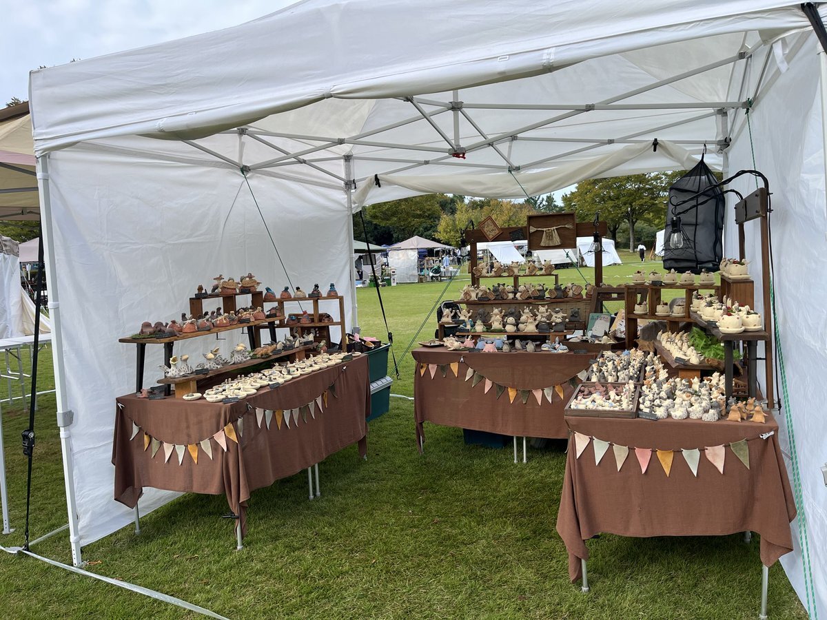 「森の青空アート」準備完了! 天気も夕方まで持ってほしいな ぜひぜひ見に来てくださいね(^^)/ 10/18.19 (土日)「森の青空アート」 会場 石川県 北部公園 ブース番号 40 morinoaozora.com #陶人形ふじいかずのり #陶人形 #クラフト #森の青空アート #金沢市 #北部公園 #パグ #植木鉢 pic.x.com/wKhZvHDY2j