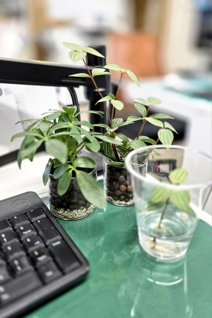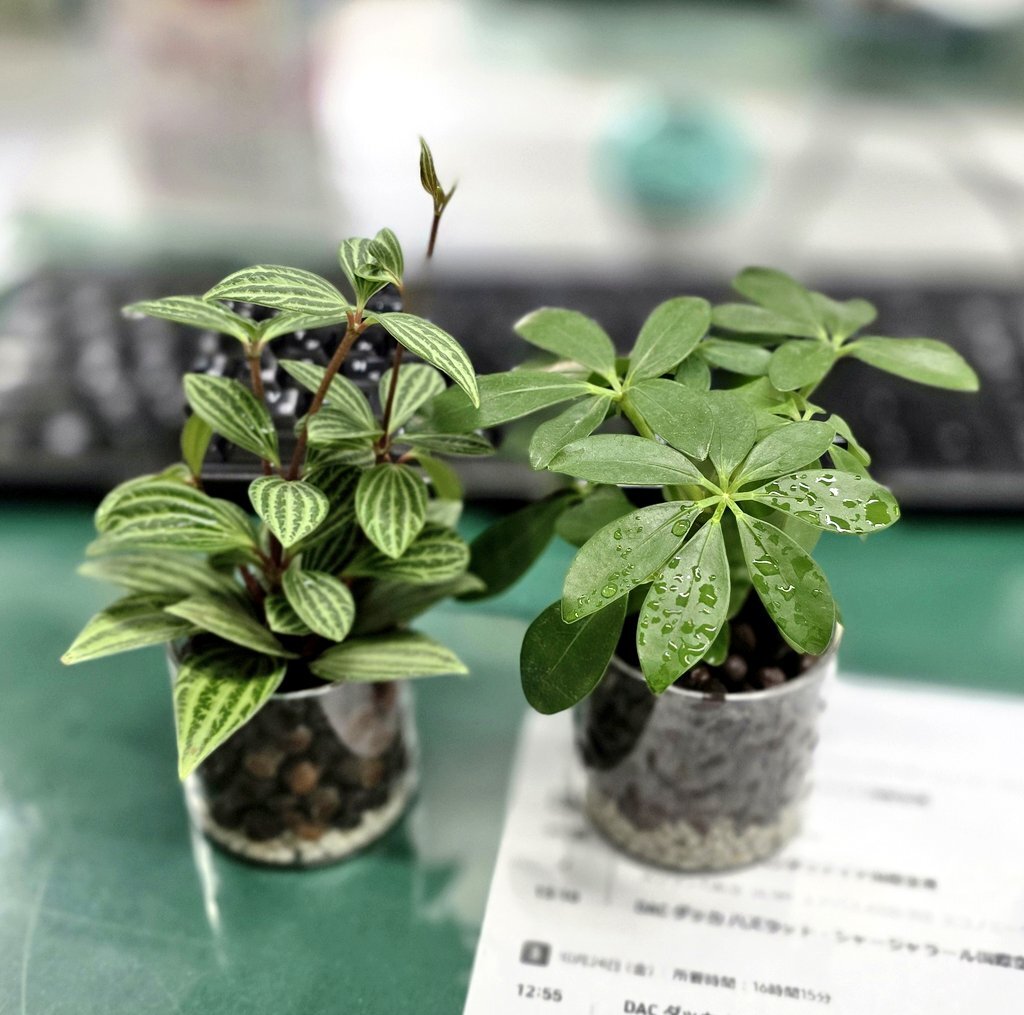トラブル対応で休日出勤。 対策会議の前にデスクの🌿🍀の水を替えて、観察中🤣💦 #ペペロミア #ペペロミア・プテオラータ #カポック #観葉植物 #水耕栽培 #ハイドロカルチャー #houseplant #indoorplant #hydroponics x.com/ken39wow/statu…