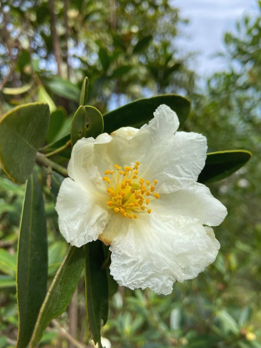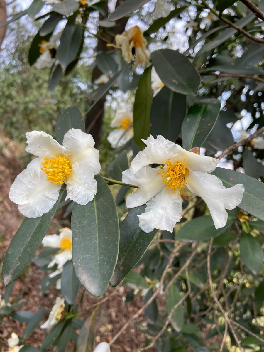 山の中で咲いていたツバキの仲間、油茶の花🌼 白い花びらと黄金色の蕊が朝の光にきらめいて、本当にきれいだった。 #自然が好き #花のある暮らし #癒し #写真好きな人と繋がりたい #秋の風景 #植物好きな人と繋がりたい pic.x.com/xNR8mzbK9K