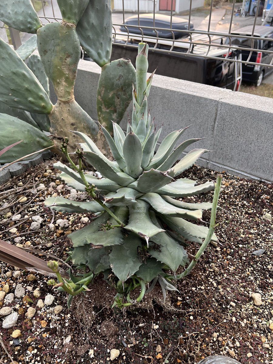 雷神の花後処理✂︎ 花芽の茎をカットしました 根元の方から子株が出始めてきた🌱 #アガベ #雷神 #ガーデニング #園芸 #植物好きな人と繋がりたい #花壇 #緑のある暮らし #多肉植物 pic.x.com/ldXAu7T72x