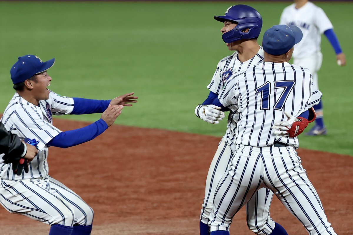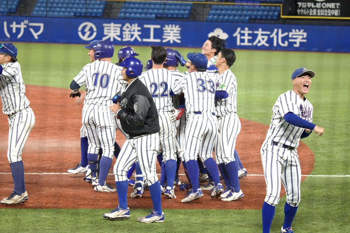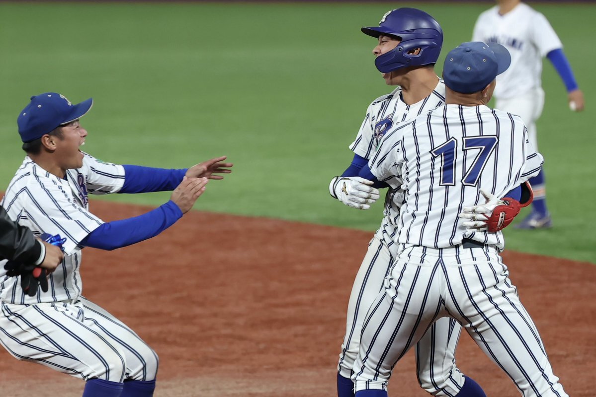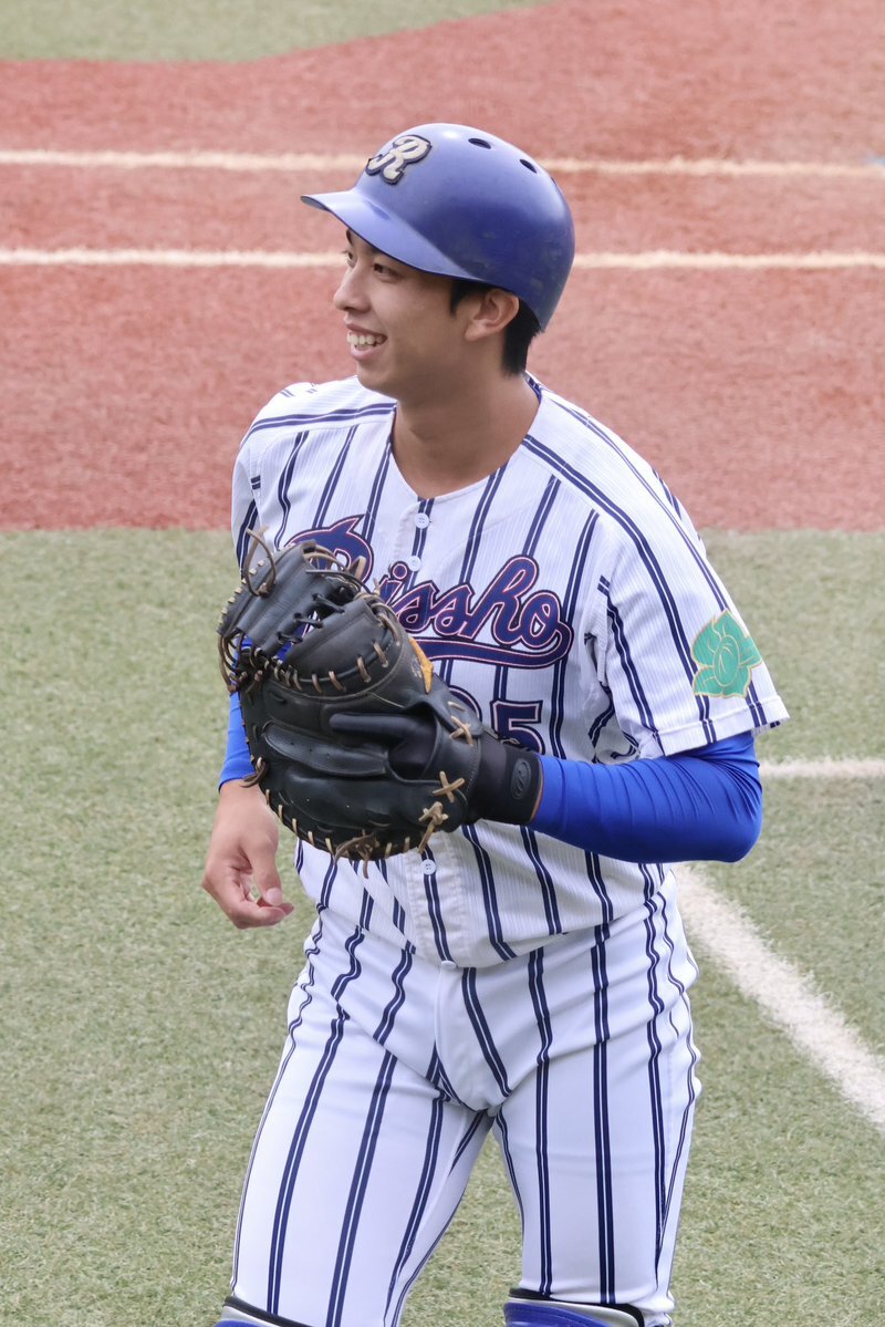 #東都大学野球入れ替え戦 先勝した #立正大 (左から)サヨナラ打の #椎木卿五 選手(1年=#横浜)と #林燦 投手(4年=広陵)。椎木君のこの表情から、そのうれしさが伝わってくる~~~😆👍 pic.x.com/MHEr1O3e8h