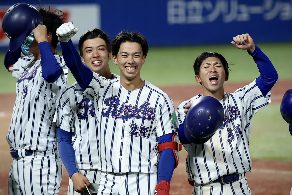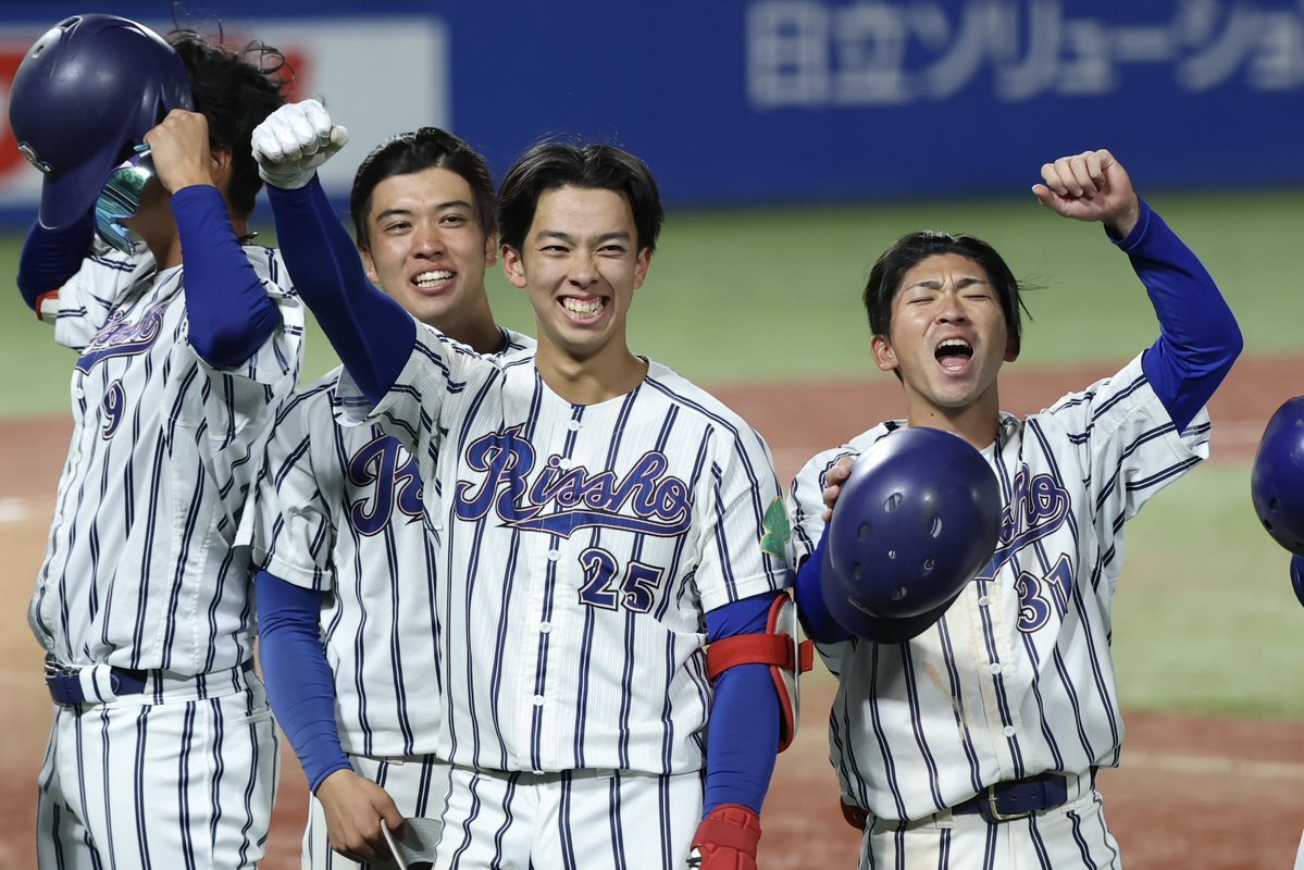 秋季1部・2部入替戦 第1戦 立正大学 vs 駒澤大学 9×-8 〇 #椎木卿五 ① 選手のサヨナラタイムリーで勝利いたしました。 詳細は後ほど投稿します #立正スポーツ新聞部 #立正大学硬式野球部 #東都大学野球 #プレユニ22 pic.x.com/mYDgUuMFyY