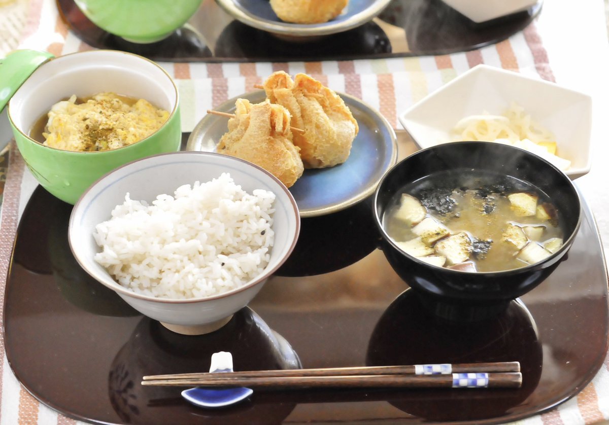 本日の朝食。黒毛和牛と白滝とインゲンのすき煮、ふわふわ玉子焼き添え。ポテトサラダの油揚げ包み揚げ。柿と大根と蓮根の酢の物。 味噌汁の具材は、トゲ無し美茄子と焼き海苔。 #朝ごはん #残り物アレンジ #楢岡焼の器 #ポテトサラダの油揚げ包み揚げ #すき煮 #酢の物 #味噌汁 #漆器の普段使い pic.x.com/3UZpaU1Xkt