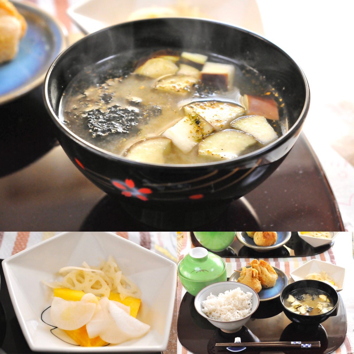 本日の朝食。銀鱈の自家製西京焼き。魚肉ソーセージと野菜の焼き浸し。炒り卵。いぶりがっこ、らっきょう漬け。汁椀は、玉ねぎと白菜、焼き海苔、刀削麺(#大成食品)のスープ。 #朝ごはん #銀鱈の西京焼き #刀削麺のスープ #楢岡焼の器 #いぶりがっこ #焼き浸し #ラーメンスープ pic.x.com/R2j9Y0fJ9a