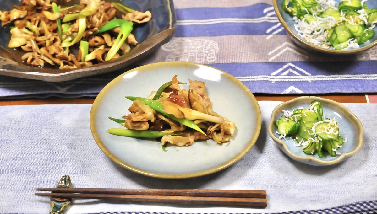 昨晩のうちごはん。豚肉と木の子のさっぱり炒め。もう一品は、しらす胡瓜。秋田・楢岡焼の器を使用。 #うちごはん #豚肉と木の子炒め #しらす胡瓜 #楢岡焼の器 pic.x.com/b0IxwoNvQo
