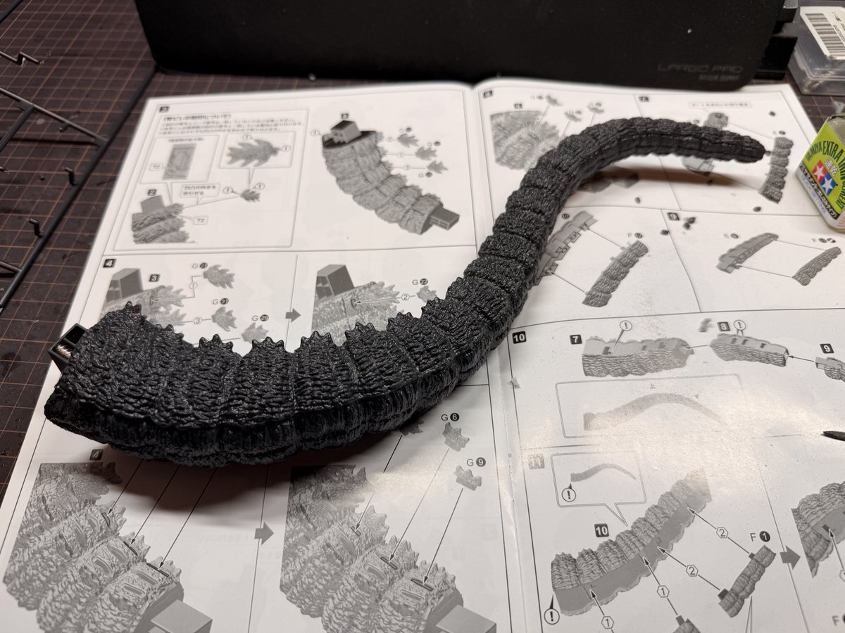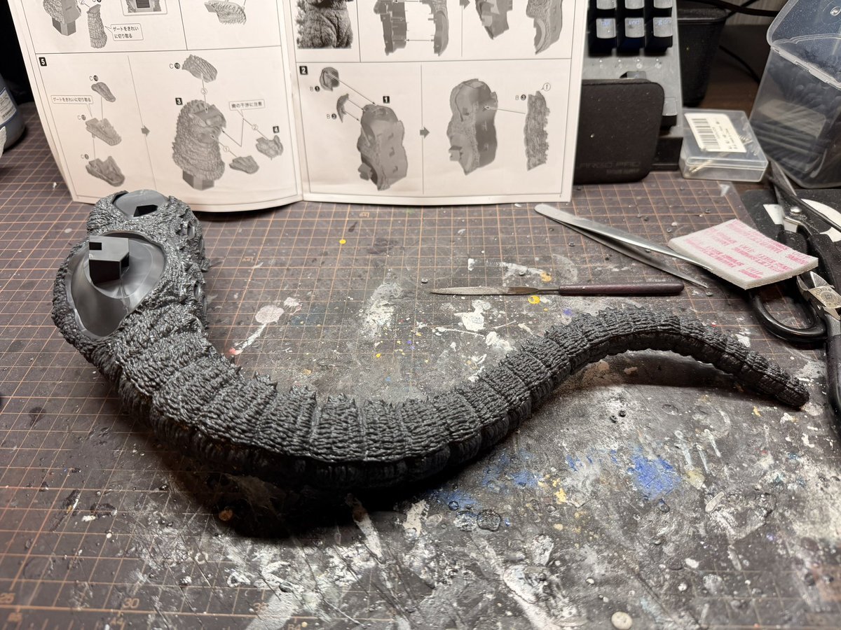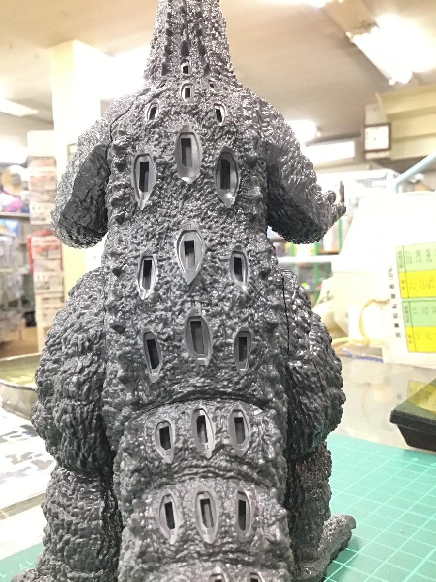 #コトブキヤ #極獣造形 ゴジラ(1989) スタート 雨で塗装出来ないので#アオシマ ゴジラお休みして背ビレからパーティングライン消し 目立つライン少ないけど無い事無いハズなのでヤスリがけ #ゴジラ #ビオゴジ #ゴジラVSビオランテ pic.x.com/j1Ksj7xtCP