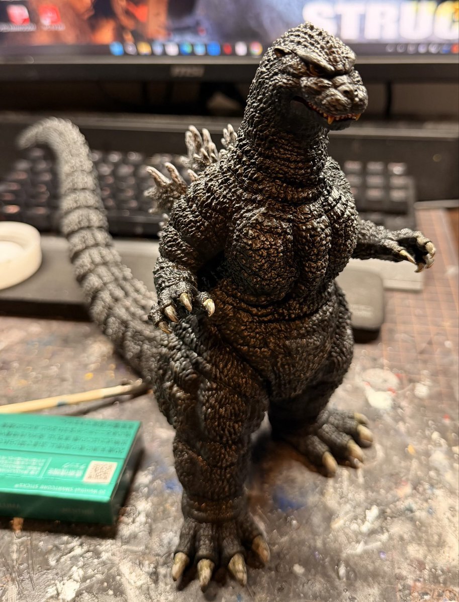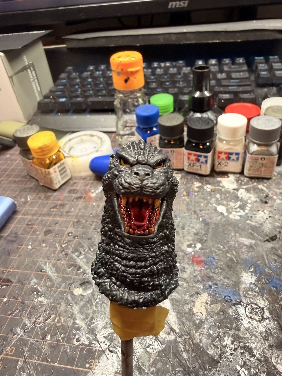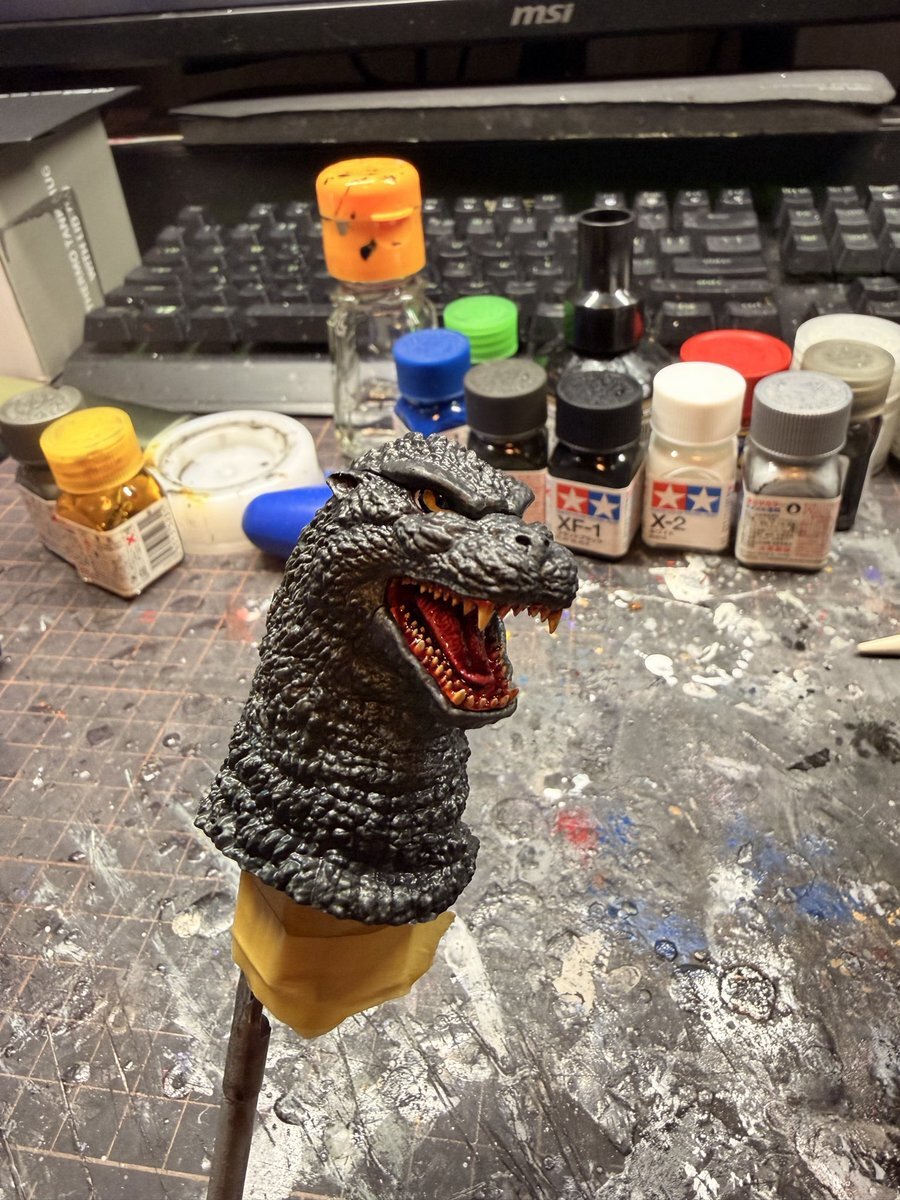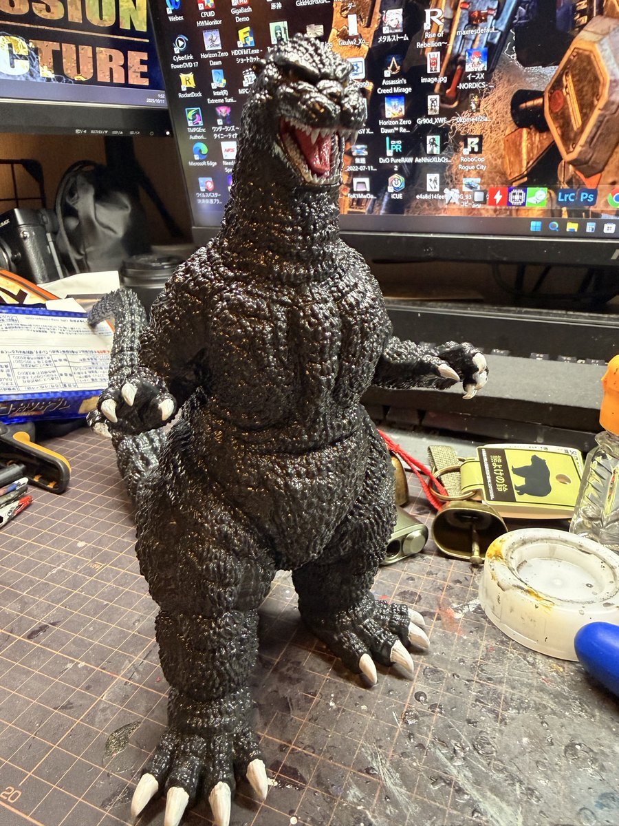 ゴジラは歯磨きしません。 牙にだけクリアイエローを塗り塗り。 #ゴジラ #コトブキヤ #筆塗り #極獣造形 pic.x.com/FNBIrDG2d2