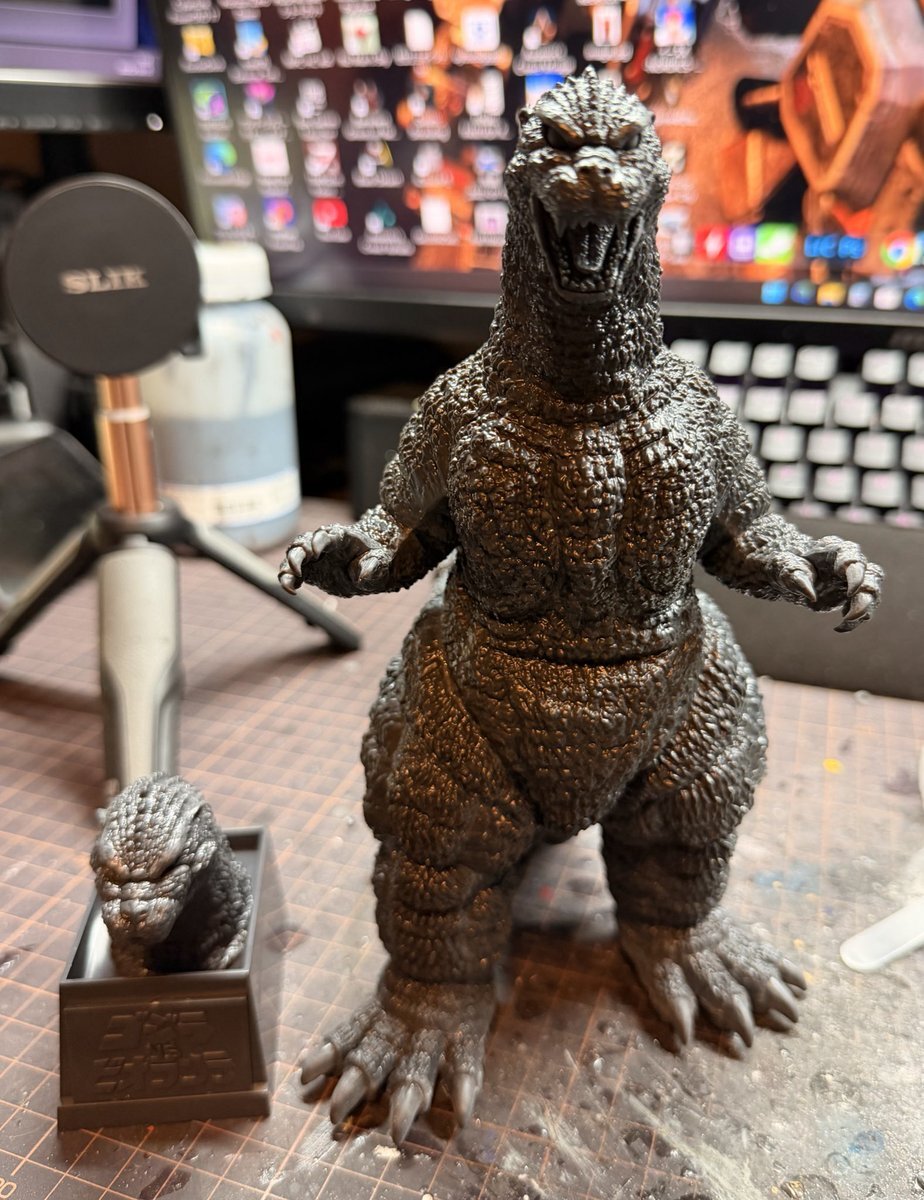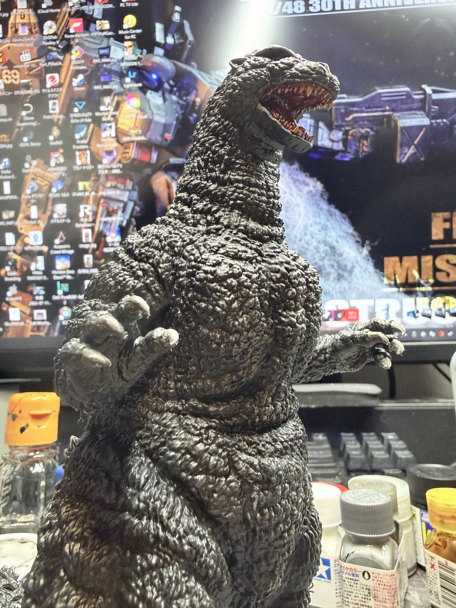 「ゴジラ(1989)」 できました。口閉じヘッドの牙を折ってしまい、 途中、パーツ取り寄せで時間くいましたが、 かっけーーー。 造形もいいし、何より組みやすい。 初めての生物プラモ、めっちゃ楽しめた。 #ゴジラ #コトブキヤ #筆塗り #極獣造形 pic.x.com/JxAh0n7WDV x.com/r0NDDGOwR4WN2u…