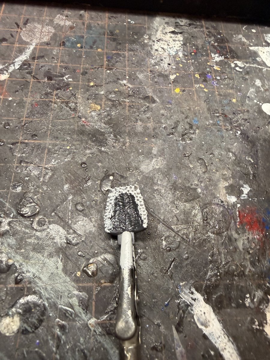 シルバー混ぜたグランプリホワイトを塗り塗り。 結構適当。 #ゴジラ #コトブキヤ #筆塗り #極獣造形 pic.x.com/i9mFihFd8Y