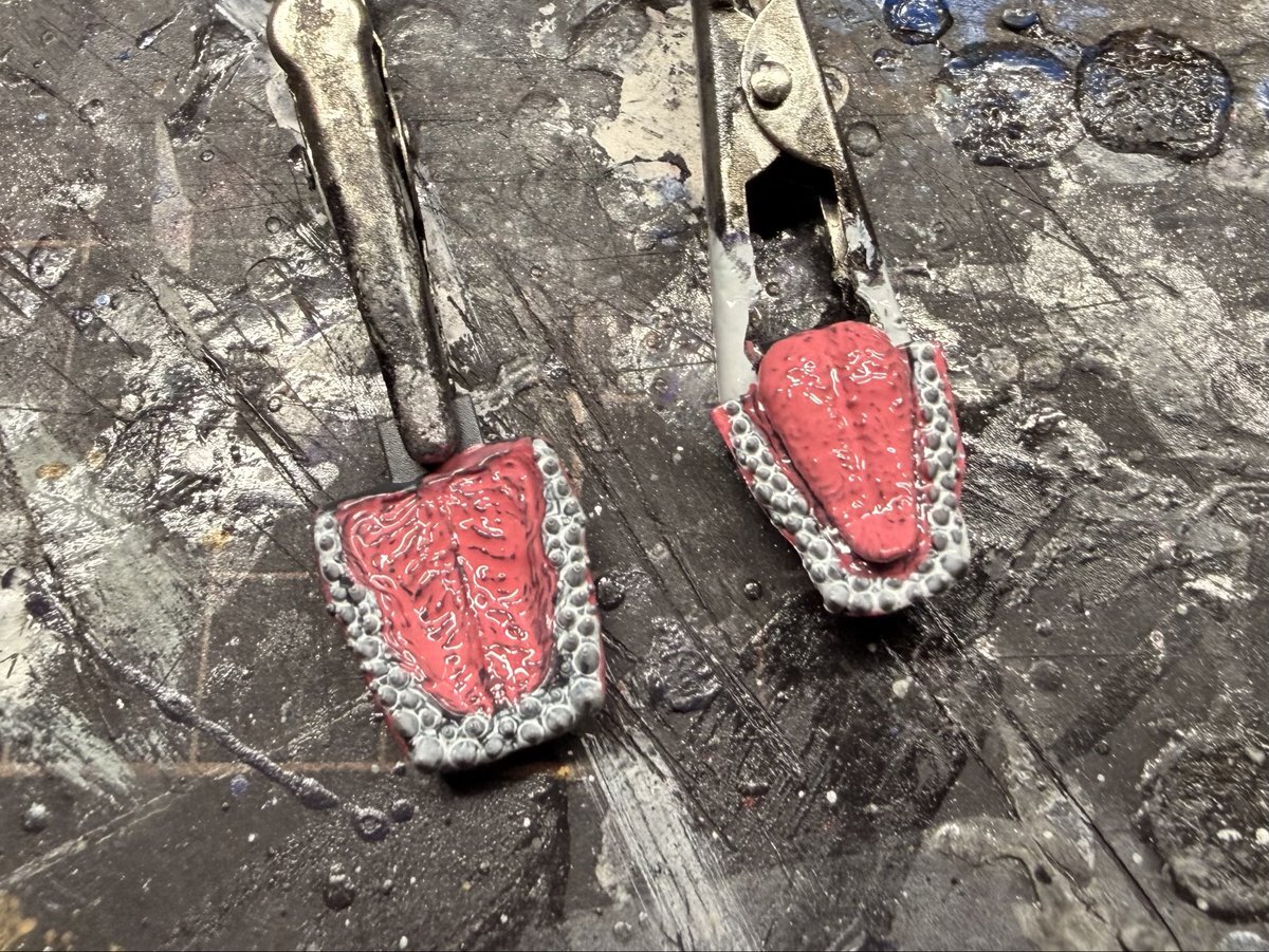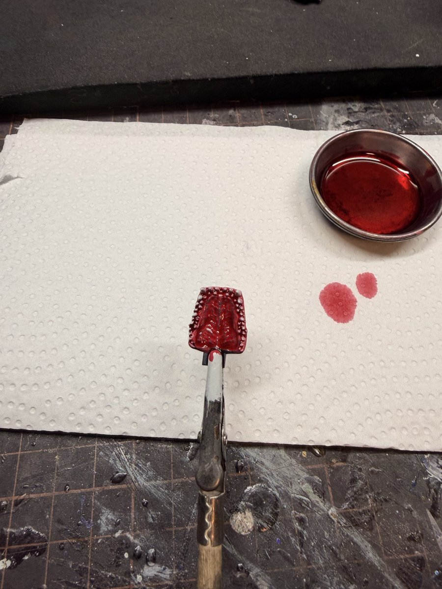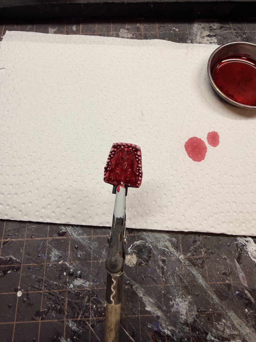 さっきのホワイトにレッドを入れて、ポリグリップ作ります。 薄め液入れて、気持ちシャバシャバ。 浸透力つかって塗り塗り。 #ゴジラ #コトブキヤ #筆塗り #極獣造形 pic.x.com/Krjvh4DiBT