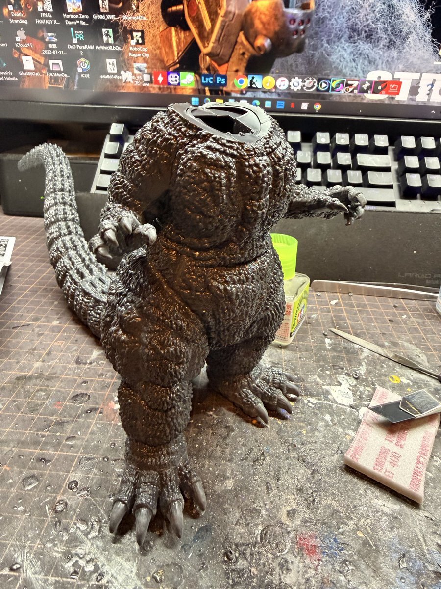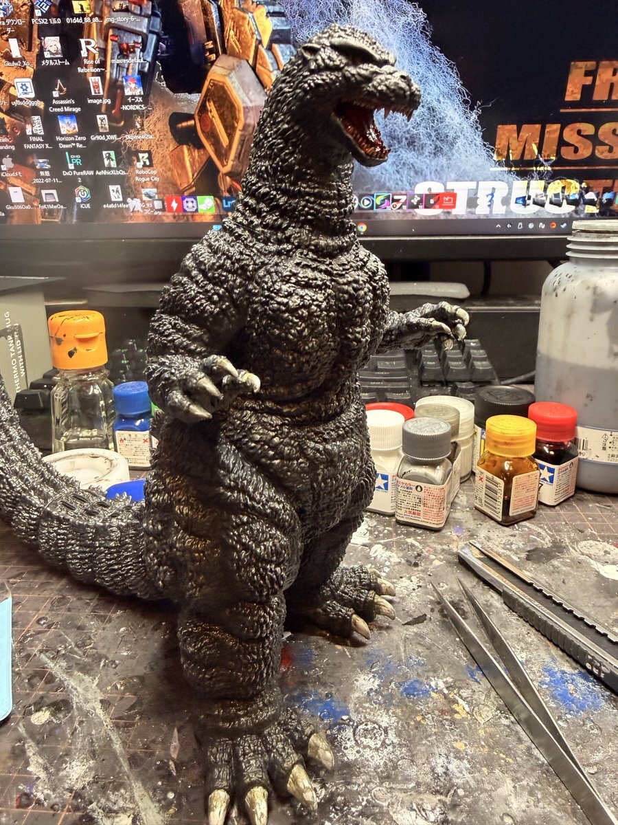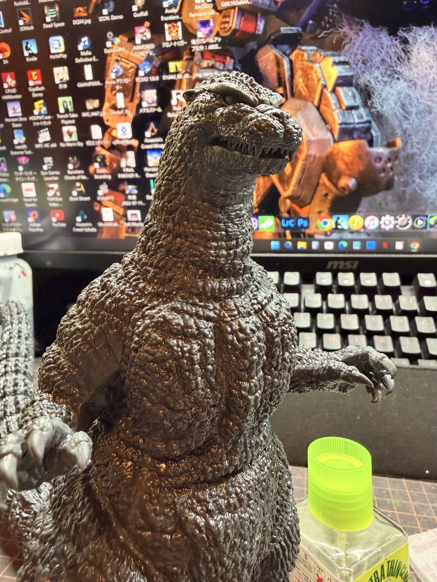 ポリグリップ2回目 シャバシャバなので薄塗りですね。 開口バージョンじゃないので、 まったく見えなくなります。 #ゴジラ #コトブキヤ #筆塗り #極獣造形 pic.x.com/sZBbd2ptnT