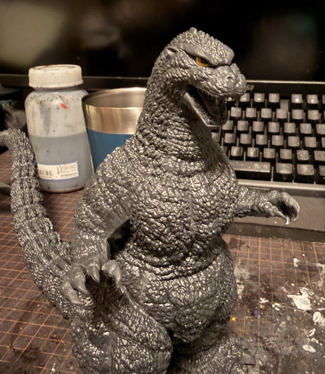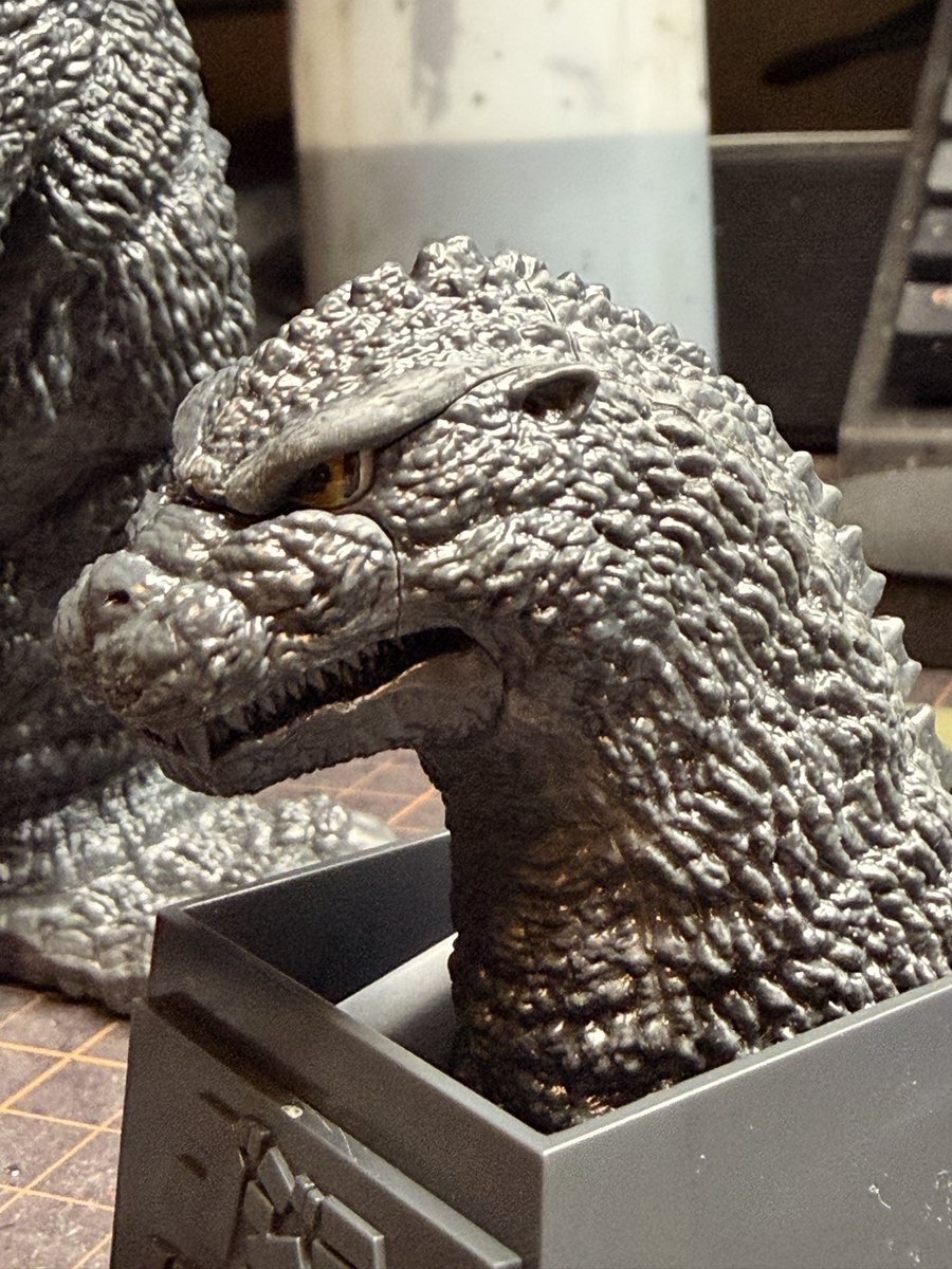 #コトブキヤ #極獣造形 ゴジラ(1989) 開眼 仮組みであたりをつけバラして塗装後組んだら1個ズレてた とても塗りやすくありがたい分割ですが位置出し難しいで瞳モールド有りも有ったらいいな #ゴジラ #ビオゴジ #ゴジラVSビオランテ pic.x.com/L4Xt8dGPC8