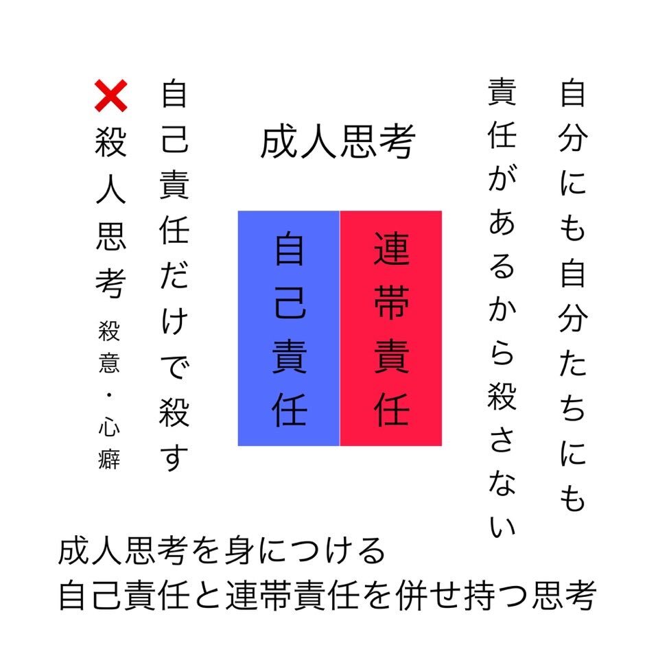 殺意の解像度を上げると 間違った思考・危険な思考で あることが鮮明になる。 論理的、構造的に 連帯責任が欠落した思考である。 人間性が無くなる。 #合法的に人を殺してもいい 狂った思考 #殺人思考 学問的認知が必要である。 #構造主義 #成人思考・大人の責任 #自己責任と連帯責任を併せ持つ思考 pic.x.com/6JjYLLZQ7n