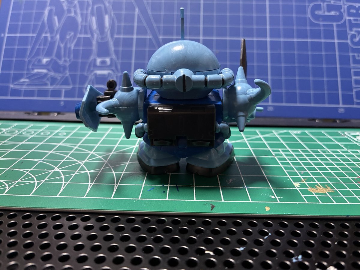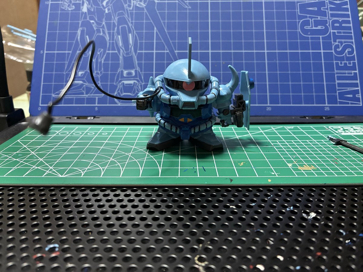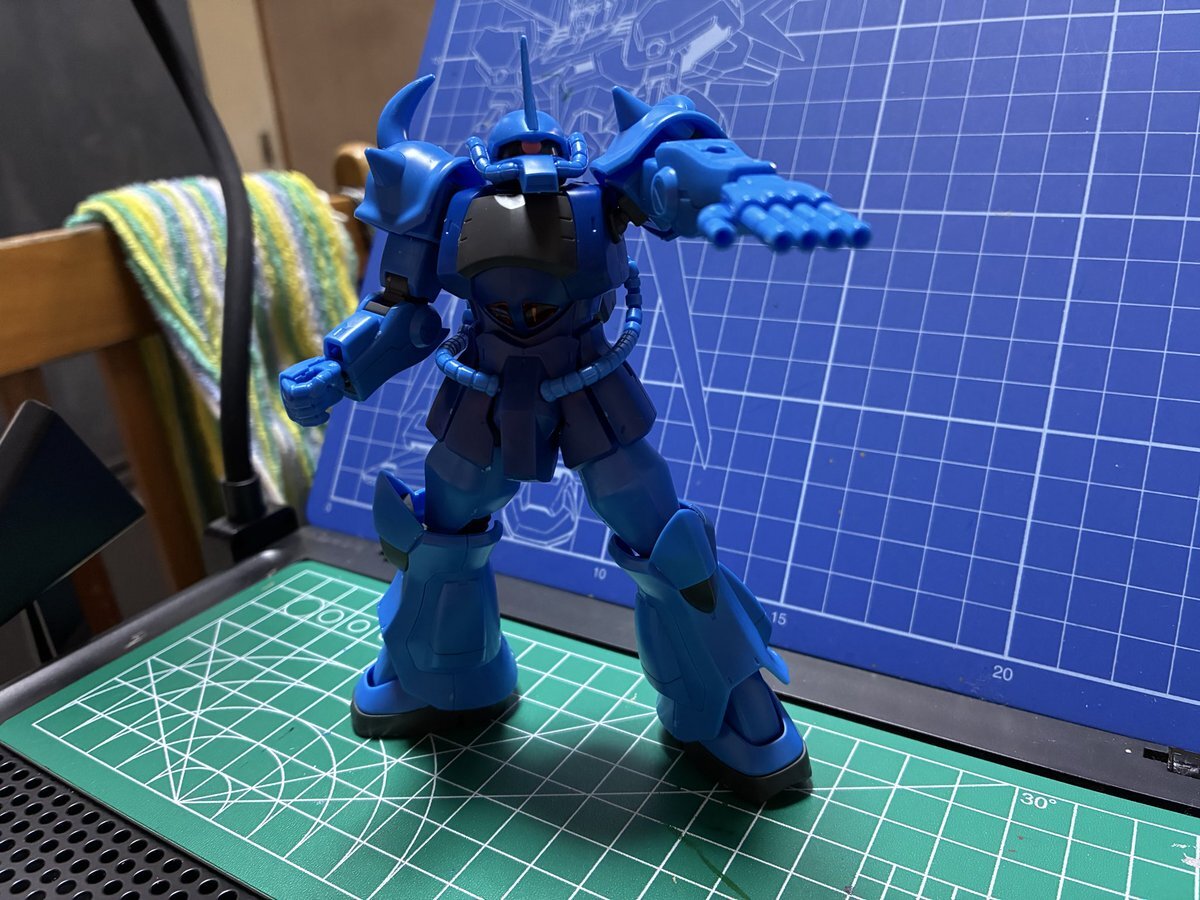 こんばんは🌇グフカスタム完成でございます🙂。小さいです、かなり😂。マスコットみたいな感じがします☺️。ヒートロッドは腕部の裏側が肉抜きされており、そこから通す感じになります🤔。明日はおやすみ💤。投稿はしますよ笑。 #模型サークルMPEG #おもちゃライフ pic.x.com/3MMMTppSqj