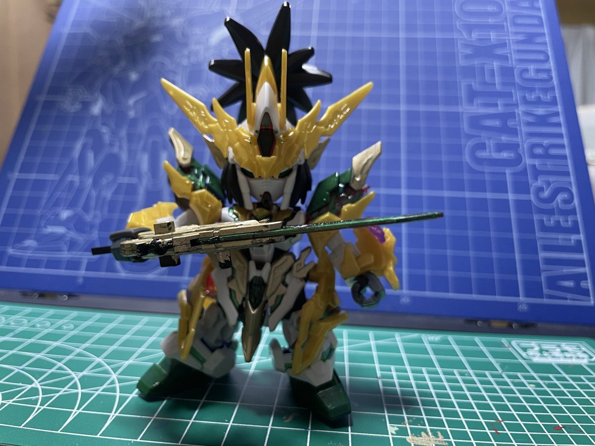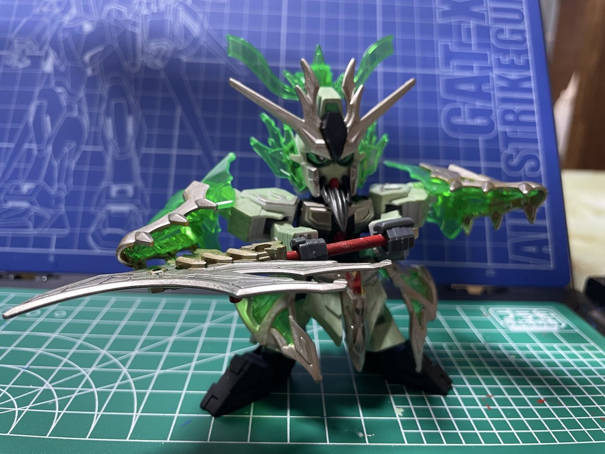 こんばんは🌛今日は趙雲ダブルオーガンダムの続きになります。タミヤのグリーンで塗装してあります🙆♀️。意外と深みのある色してます😊。まだ肝心のGNドライヴがありませんが、ほぼ完成になります。明日も続きになります☺️。 #模型サークルMPEG #おもちゃライフ #はにわプラモ pic.x.com/GAtrotC9uP