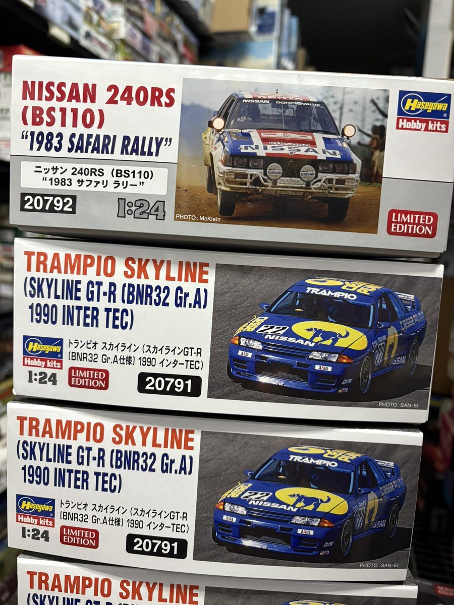 2025.11.14 入荷じゃ ٩( ᐛ )و #ハセガワ #トランピオスカイライン BNR32 #ニッサン 240RS ‘83サファリラリー #浜松市 #模型屋 #プラモデル #スケールモデル #ホビーショップやおや 11、12月 #特別営業 のご案内 #臨時休業 pic.x.com/kXvcvlDMUE