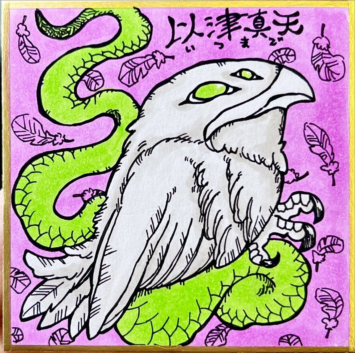 ミニ原画色紙『以津真天』 「いつまで、いつまで」と声が聞こえた。 先ほどから、頭上には奇妙な鳥が飛んでいる。 もしかすると… #創作 #妖怪 #イラスト #模様 # #色紙 #yokai #illustration #illust #art #以津真天 pic.x.com/V2ZeQy8qfp