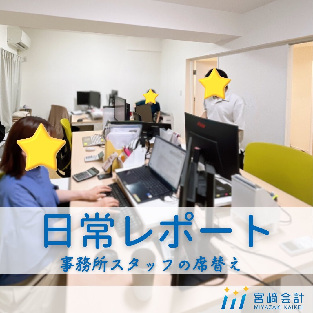 🌟私たちの日常レポート🌟   宮﨑会計では、定期的にスタッフの席替えを行っています! 先月、事務所内でスタッフの席替えを行いました🔄 クラウド化が進み、紙の資料も少ないので「席替えすぐ終わるかな?」と思っていたのですが、