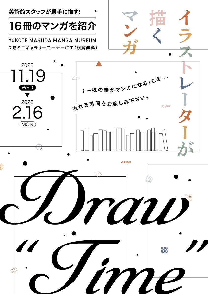 \2階 #ミニギャラリーにて「イラストレーターが描くマンガDraw”Time”」開催中!/ 【会期】2025年11月19日(水)~2026年2月16日(月) 観覧無料。ぜひご覧ください。 manga-museum.com/2025-11mini/ #横手市増田まんが美術館 #まんが美術館 #横手 #yokote #秋田 #akita #マンガ #美術館 #観光 #旅行 pic.x.com/sJLjdWOmKi