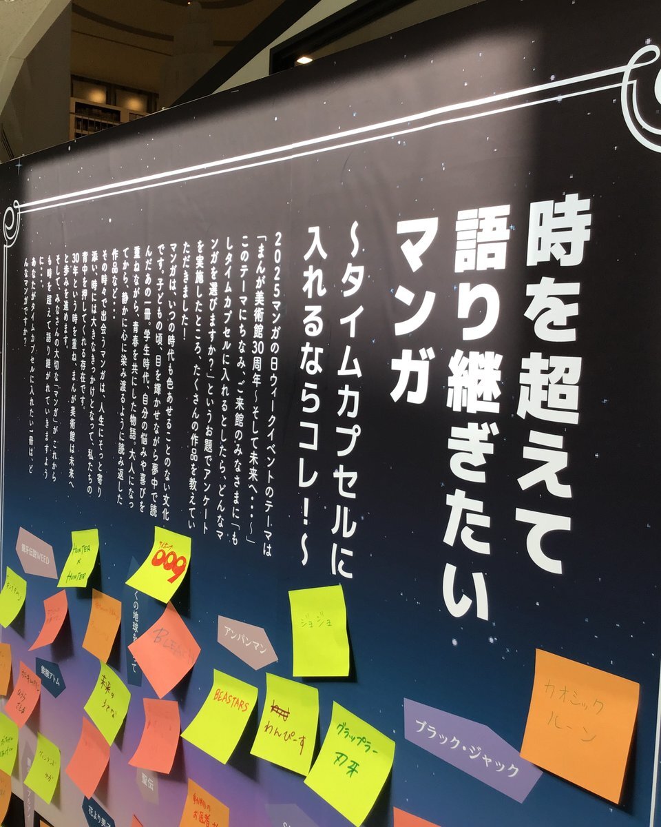 ご来館いただいた皆様からのアンケートをもとにパネルを設置!期間中、アンケートに参加しよう! あなたのとっておきの1冊は、どんなマンガですか? ぜひ教えてくださいね😊 ご来館おまちしております🎶 詳しくはこちら☞manga-museum.com/2025mangaweek/ #横手市増田まんが美術館 #まんが美術館 #横手 pic.x.com/77use5PxDY
