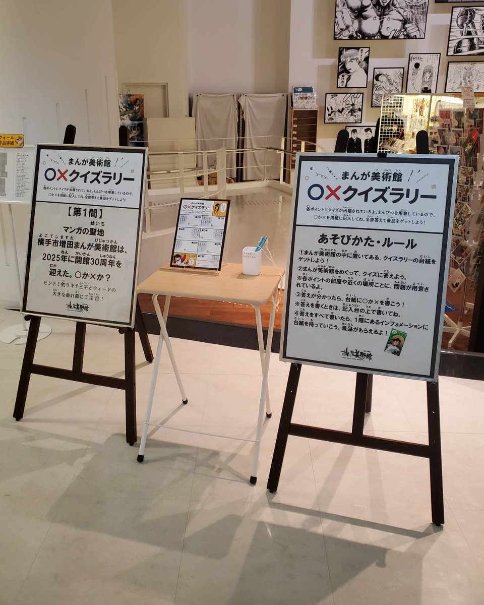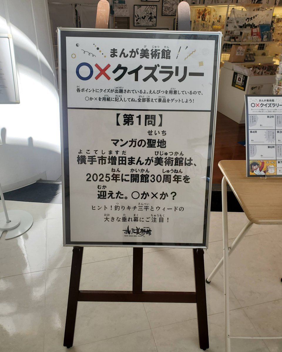 \マンガの日ウィークイベント企画‼〇×クイズラリーに参加しよう!/ #横手市増田まんが美術館 では、11/1(土)~11/9(日)のマンガの日ウィーク期間中、館内を巡る〇×クイズラリーを開催✨参加無料。全部答えた方には景品「釣りキチ三平」ステッカー(非売品)をプレゼント🎁 pic.x.com/gmaUZbN5A0