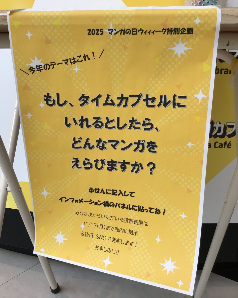 \2025マンガの日ウィーク開催中です✨/ 11/9(日)まで #横手市増田まんが美術館 では #マンガの日ウィーク を開催中です! インフォメーション前には、テーマ『まんが美術館30周年~そして、未来へ・・・~』にちなみ、「もし、タイムカプセルにいれるとしたらコレ!」というマンガを大募集😊✨ pic.x.com/fV4iDG6kQS