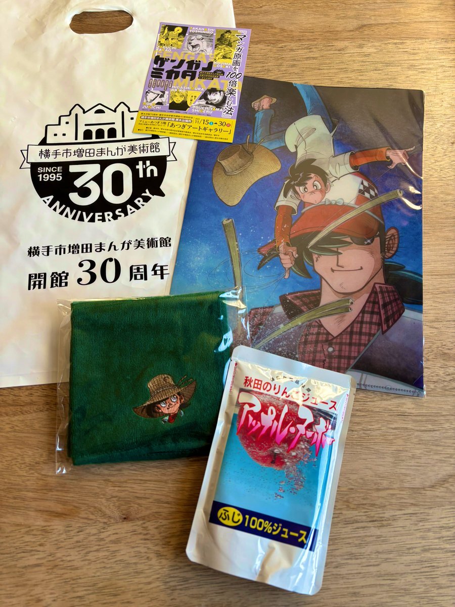 複製原画なのは残念でしたが、超高解像度スキャン&超高精細印刷での複製は、展示説明にある原画の素晴らしさや大切さを伝えるに十分な熱量でした🥰 ガラポンでりんごジュース当たった🍎 グッズも購入🎣 また横手に行かなきゃ‼️ #横手市増田まんが美術館 #アミューあつぎ #ゲンガノミカタ pic.x.com/HNpGoOm3zA