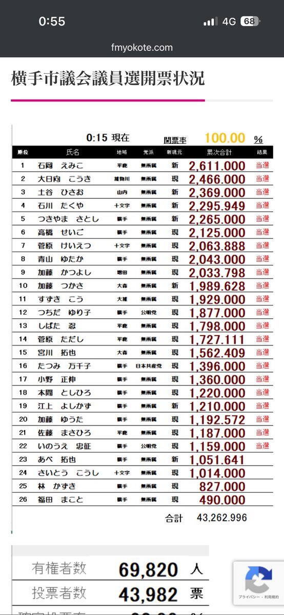 おかげさまで3期目当選できました!この光景が朝のスタンダードになるよう続けたいです。 写真2枚目が結果表です。 #横手市議会議員 pic.x.com/g2LLXIMnmQ