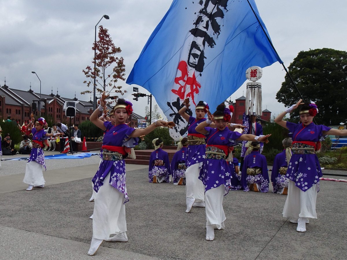 横浜百姫隊:十月十九日、横浜よさこい祭り良い世さ来い、二日目、新港合同庁舎会場にて(その4)。 #横浜百姫隊 @byakkotai2001 #横浜よさこい祭り良い世さ来い #横浜よさこい祭り #横浜よさこい #赤レンガ倉庫 #よさこい pic.x.com/rF0m3OLSQO