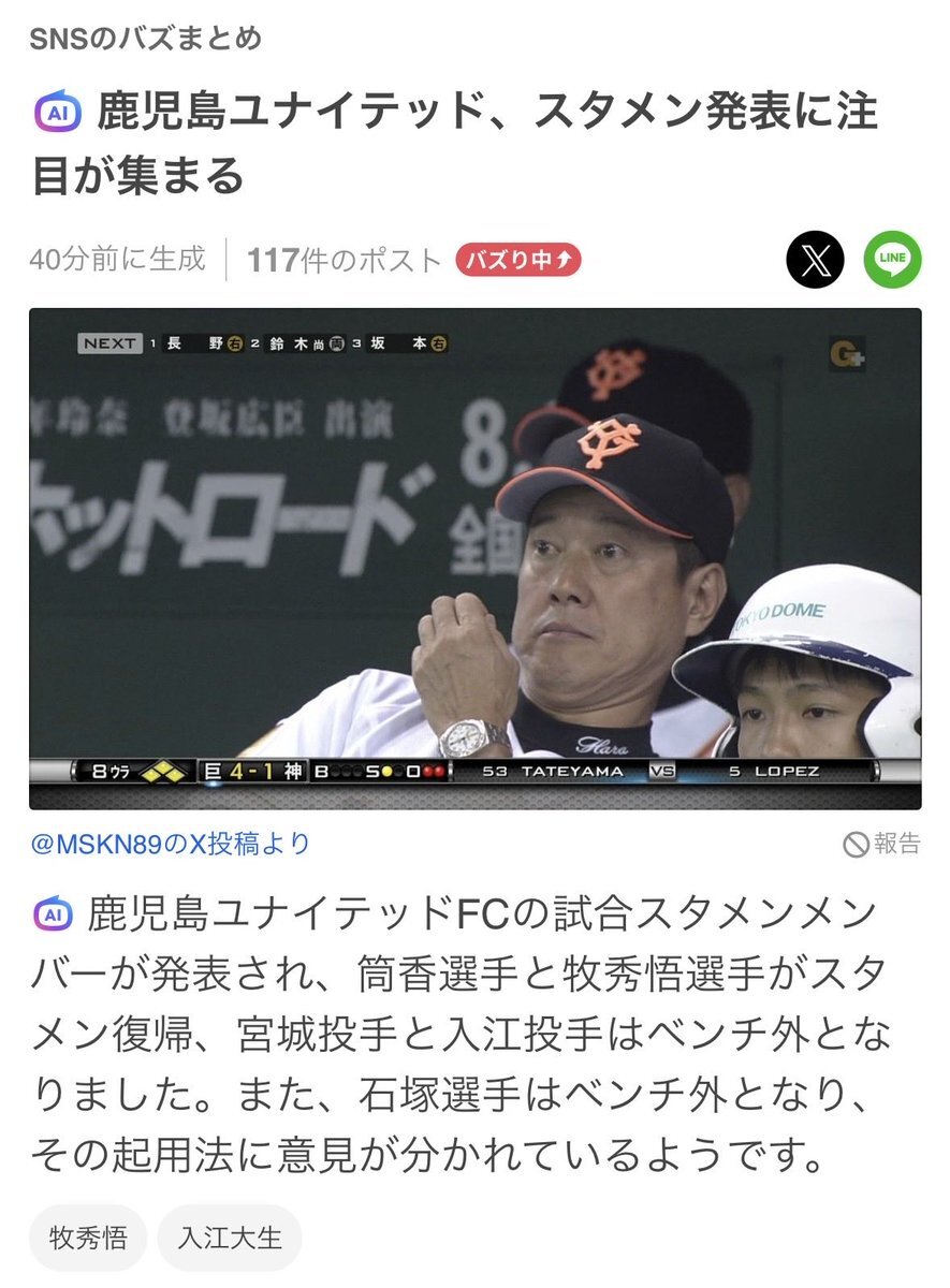 鹿児島ユナイテッドスタメン:筒香選手、牧選手、ベンチ外:宮城投手、入江投手、石塚選手⁉️監督は原さん⁉️記事も写真もグチャグチャで草 #鹿児島ユナイテッド #鹿児島ユナイテッドFC #横浜DeNAベイスターズ #読売ジャイアンツ #横浜巨人 pic.x.com/iz4JCiXQJO