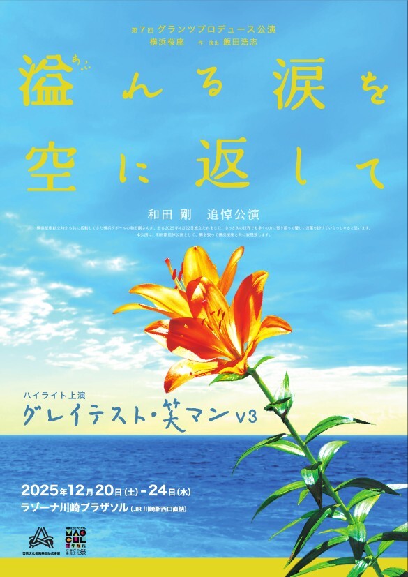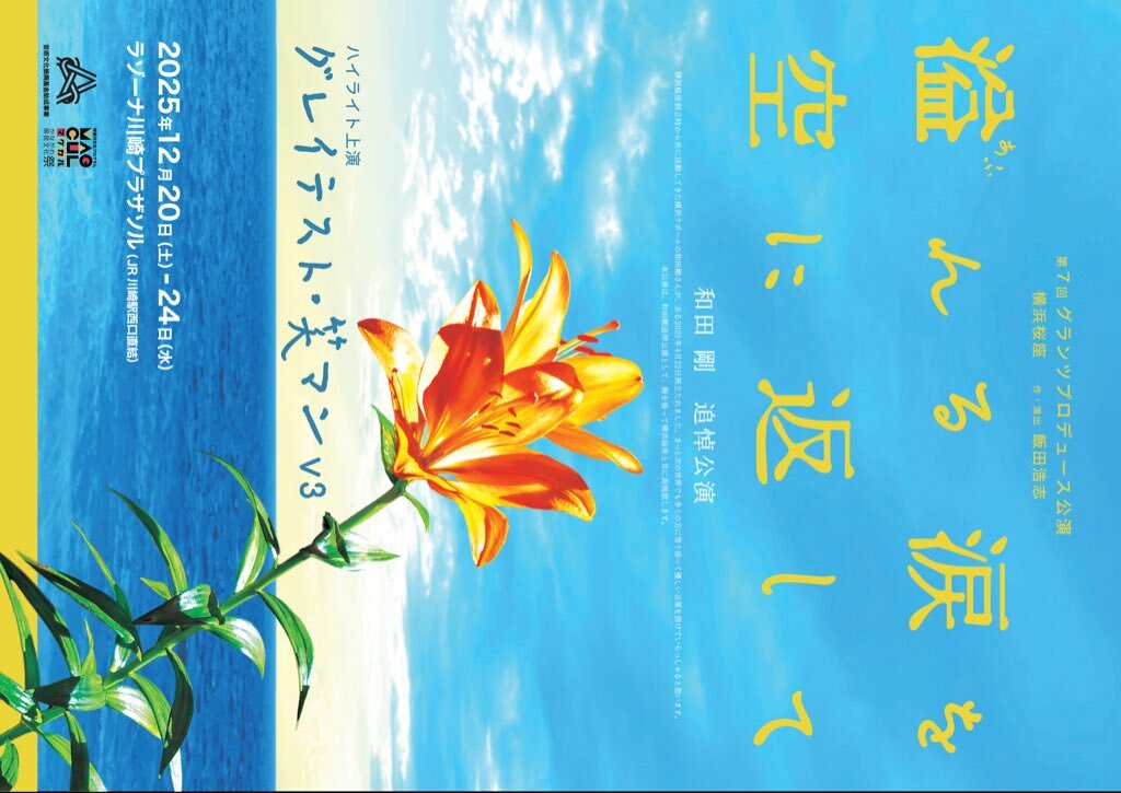 11年目の横浜桜座公演 グランツプロデュース&横浜桜座 2本立て公演 『#溢れる涙を空に返して』 『#グレイテスト・笑マンV3』(#横浜桜座) 作・演出/飯田浩志 2025/12/20〜24 ラゾーナ川崎プラザソル チケット申込み▶️stage.corich.jp/stage/394516/t…