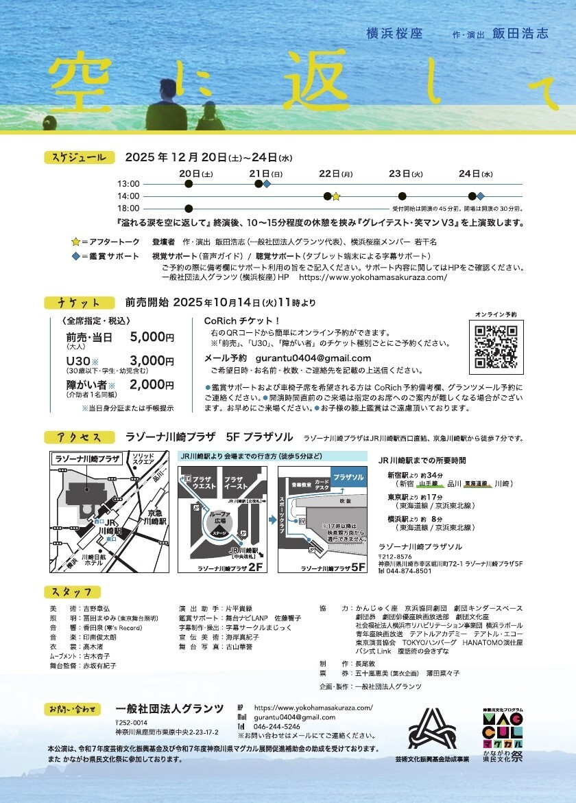\\初日1ヶ月前‼️// グランツプロデュース&横浜桜座 2本立て公演 『溢れる涙を空に返して』 『グレイテスト・笑マンV3』(#横浜桜座) 「あの子を産んで良かったのか」 命の選別と現実と横浜桜座と 📅2025/12/20〜24 📍ラゾーナ川崎プラザソル 🎫チケット申込み▶️stage.corich.jp/stage/394516/t… pic.x.com/FDBLGYQ8eD