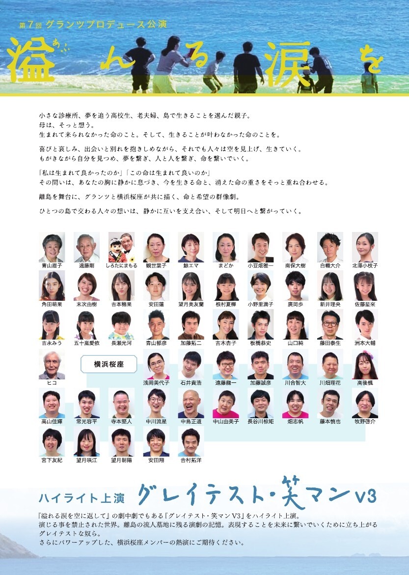 「#溢れる涙を空に返して」の劇中劇でもある『#グレイテスト・笑マンV3」をハイライト上演。 演じる事を禁止された世界。離島の流人基地に残る演劇の記憶。表現することを未来に繋いでいくために立ち上がる パワーアップした #横浜桜座 メンバーの熱演にご期待ください。 pic.x.com/cRCdJnB9tF