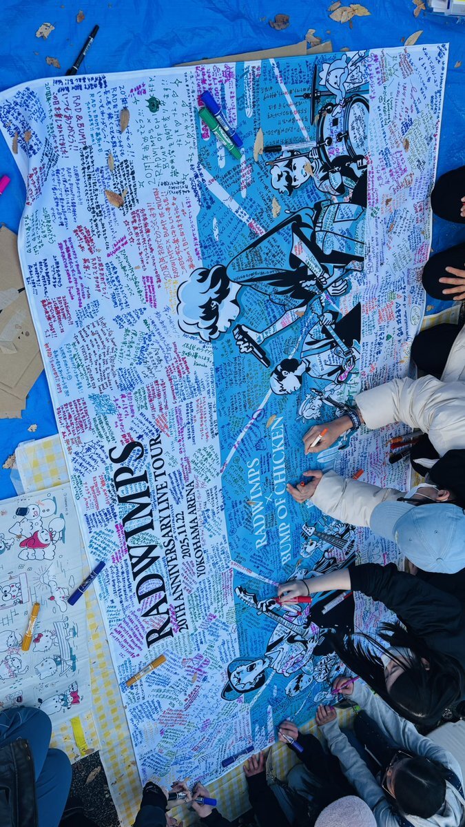 開始1時間もたたず、かなり埋まってきてます! つめつめでいいので沢山書いてください! #RADWIMPS20TH #BUMPOFCHICKEN #横浜横断幕 pic.x.com/9x135dvm91