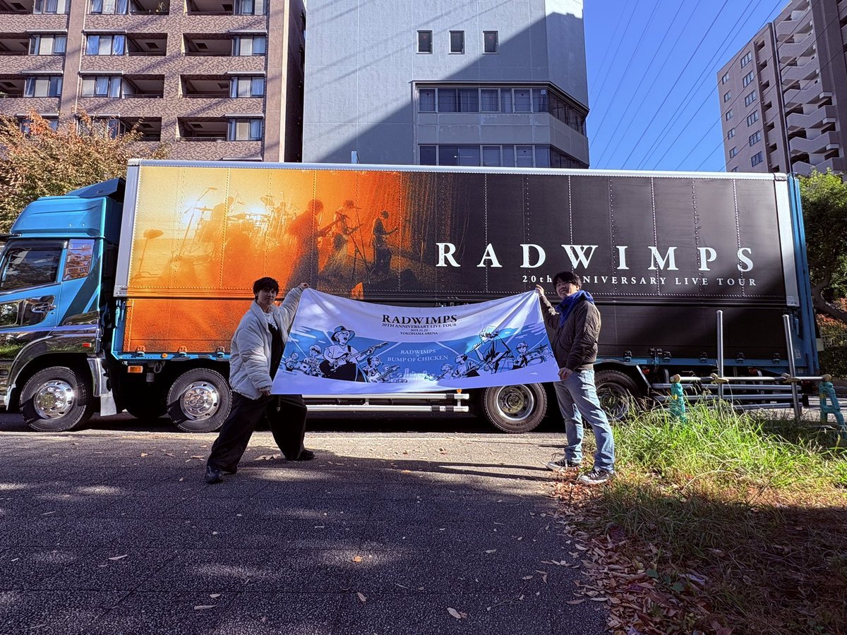 🔥横断幕本日開催🔥 RADWIMPSに、 BUMP OF CHICKENに、 感謝と応援メッセージを送りましょう! スタートは10:00 場所はRADWIMPSのツアートラック付近を予定しております 沢山のご参加お待ちしております🫶 #RADWIMPS20TH #横浜横断幕 pic.x.com/ce5rpfpYpr