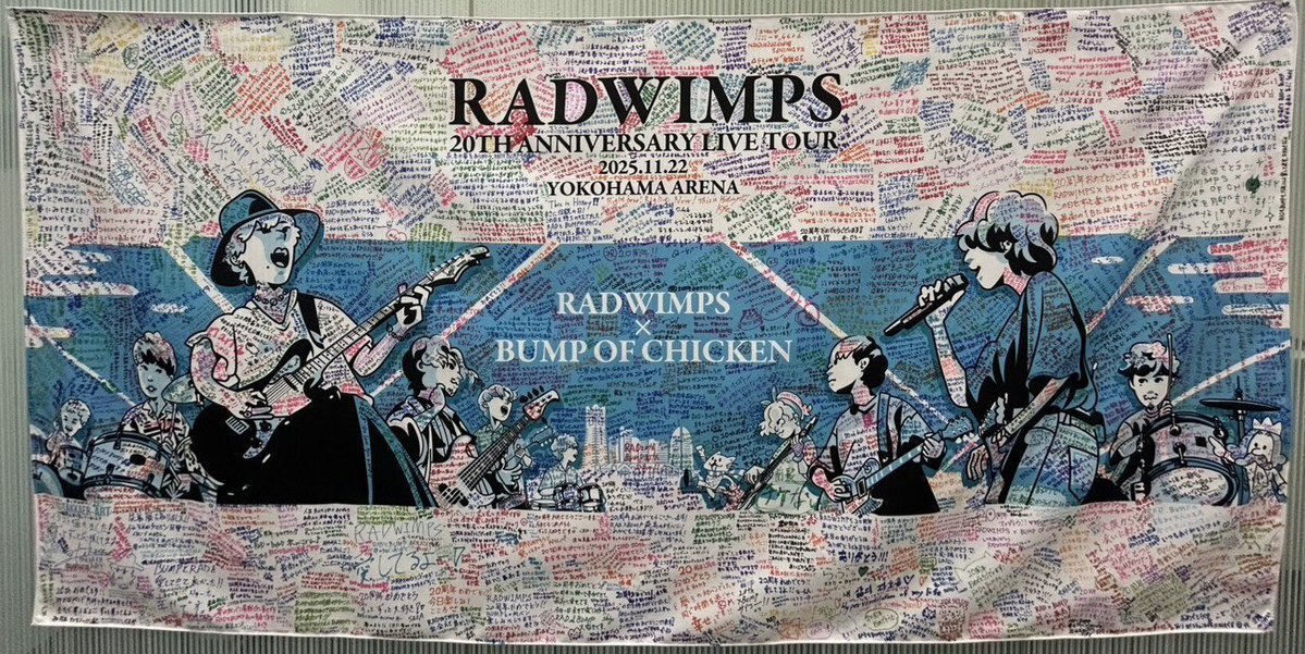 RADWIMPS 20th ANNIVERSARY LIVE TOUR in 横浜アリーナ days 1 GUEST ACT:BUMP OF CHICKEN #RADWIMPS #BUMPOFCHICKEN #横浜横断幕 pic.x.com/Ptgb4QLU9p