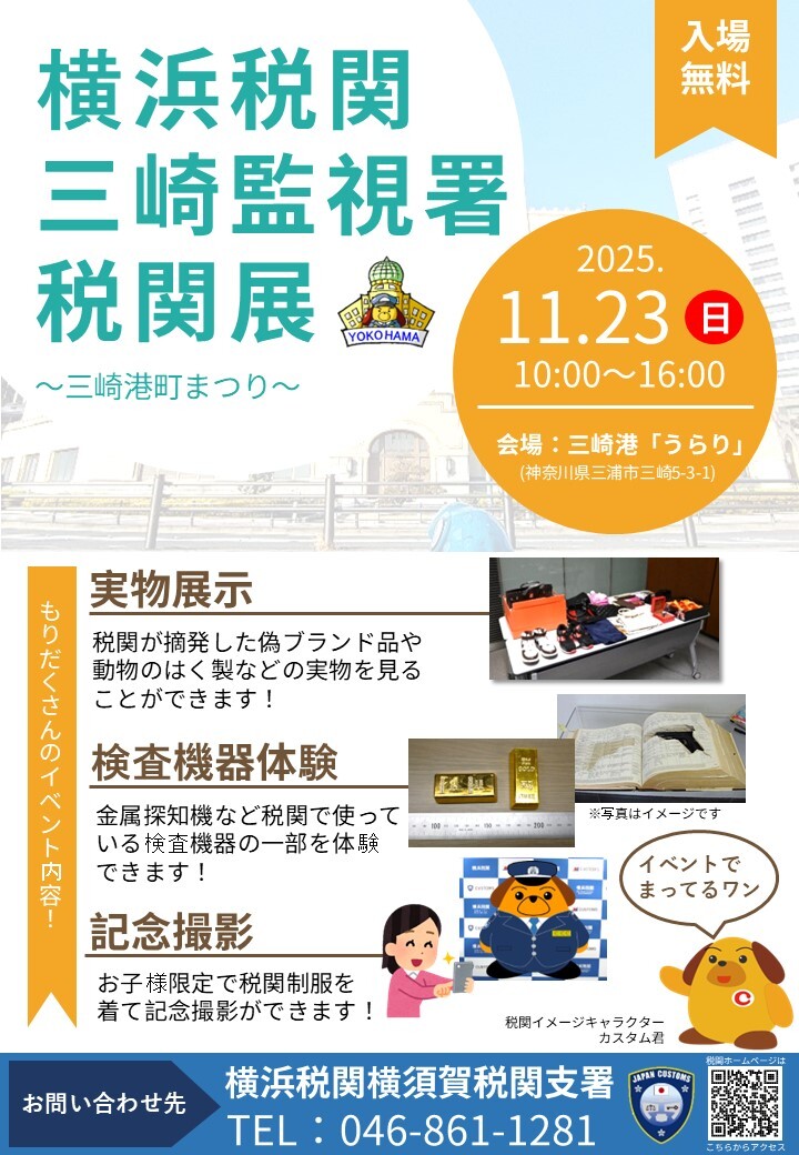 【イベント】 #横浜税関 三崎監視署は11/23(日)「三崎港町まつり」に出展するワン! 検査機器体験などのもりだくさんのイベントを実施するよ! ボク、#カスタム君 も参加するワン♪ みんなに会えるのを楽しみにしてるワン!(U^ェ^U) pic.x.com/Wb3lo4Jnj9