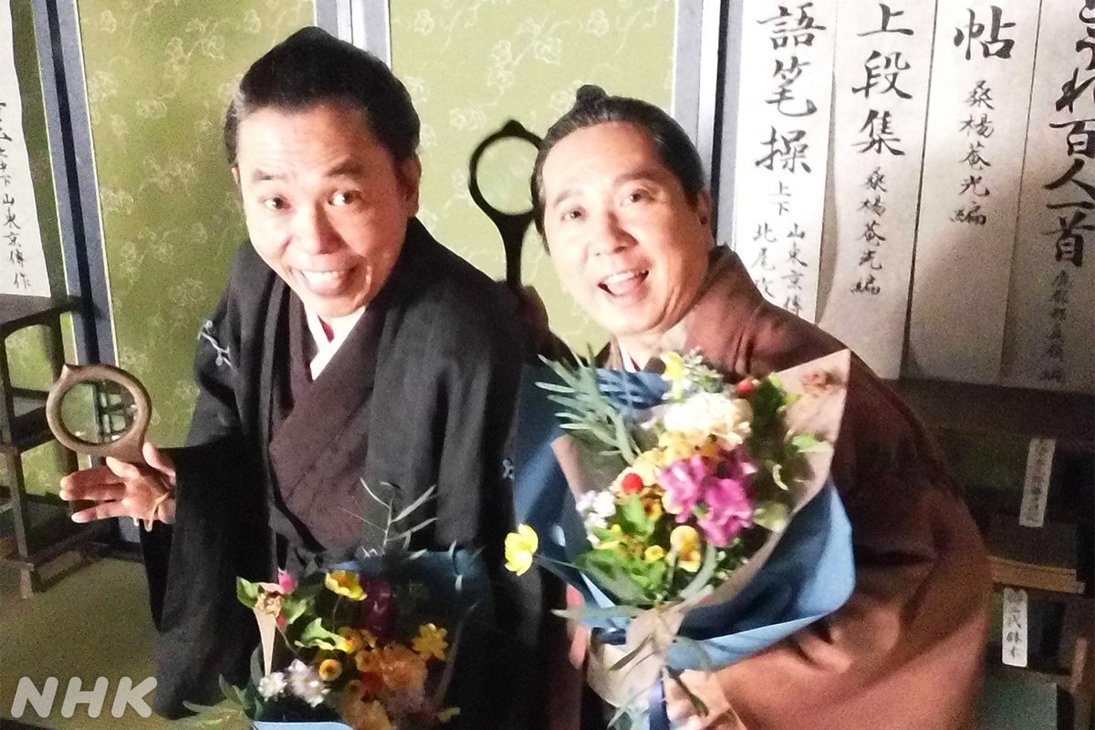 #爆笑問題 の #太田光 さん、 #田中裕二 さんがクランクアップ💐 太田さん「 #横須賀流星 くんに『出してよ』と言ったら本当に実現しまして」 田中さん「 #横浜流星 くんね」 すかさずのツッコミでした🤣 photo by みの吉 見逃しは👇 web.nhk/tv/an/berabou/… #大河べらぼう #中川翼 #橋本愛
