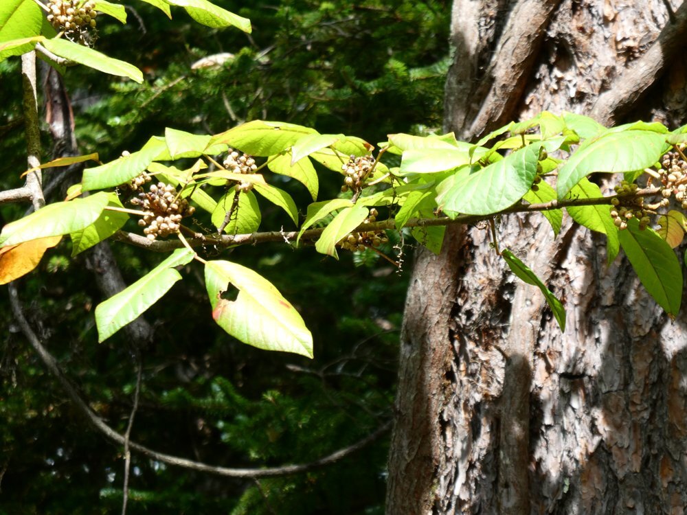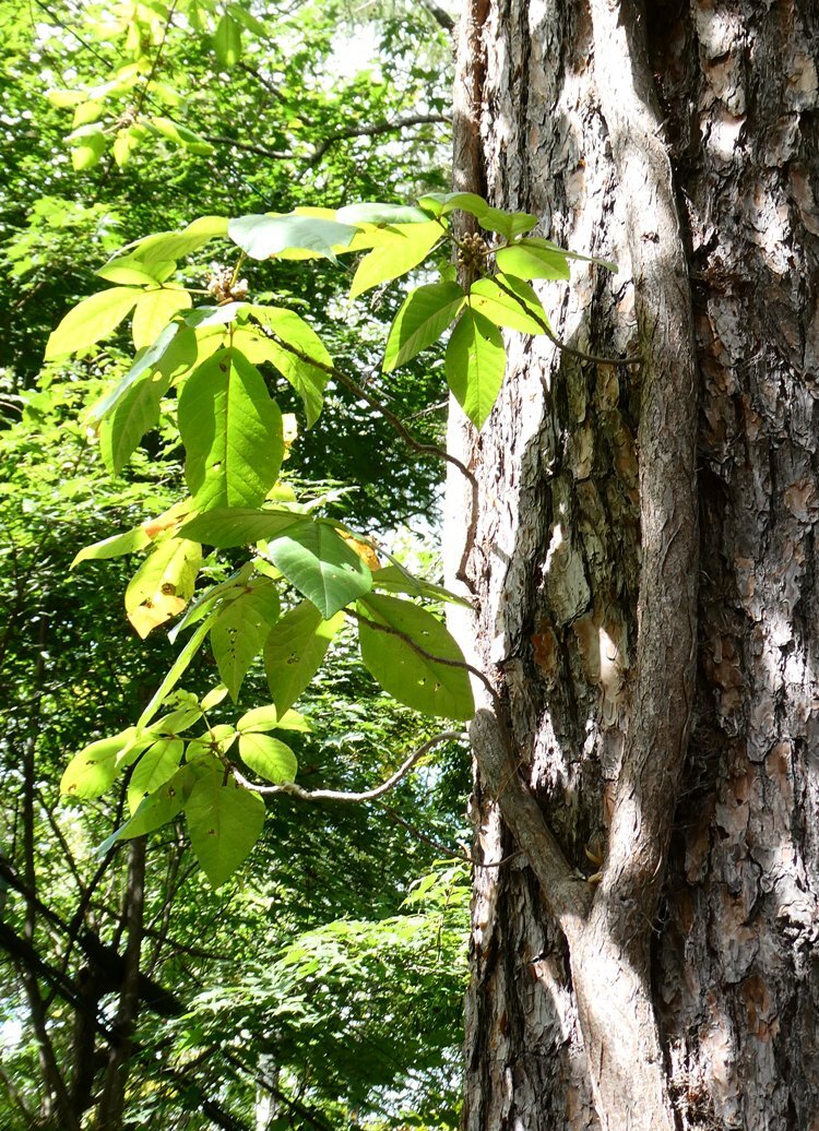 ツタウルシの果実:毒性が強くカブレると強烈と言われるツタウルシがアカマツにとりついて気根を出し樹上に這い上っていた。枝には褐色化した核果が塊状に実っていた。毒性成分のウルシオールは果実にも含まれる x.gd/Uicof #ウルシ #漆 #果実 #樹木 #毒 pic.x.com/7VNYiAq6xi