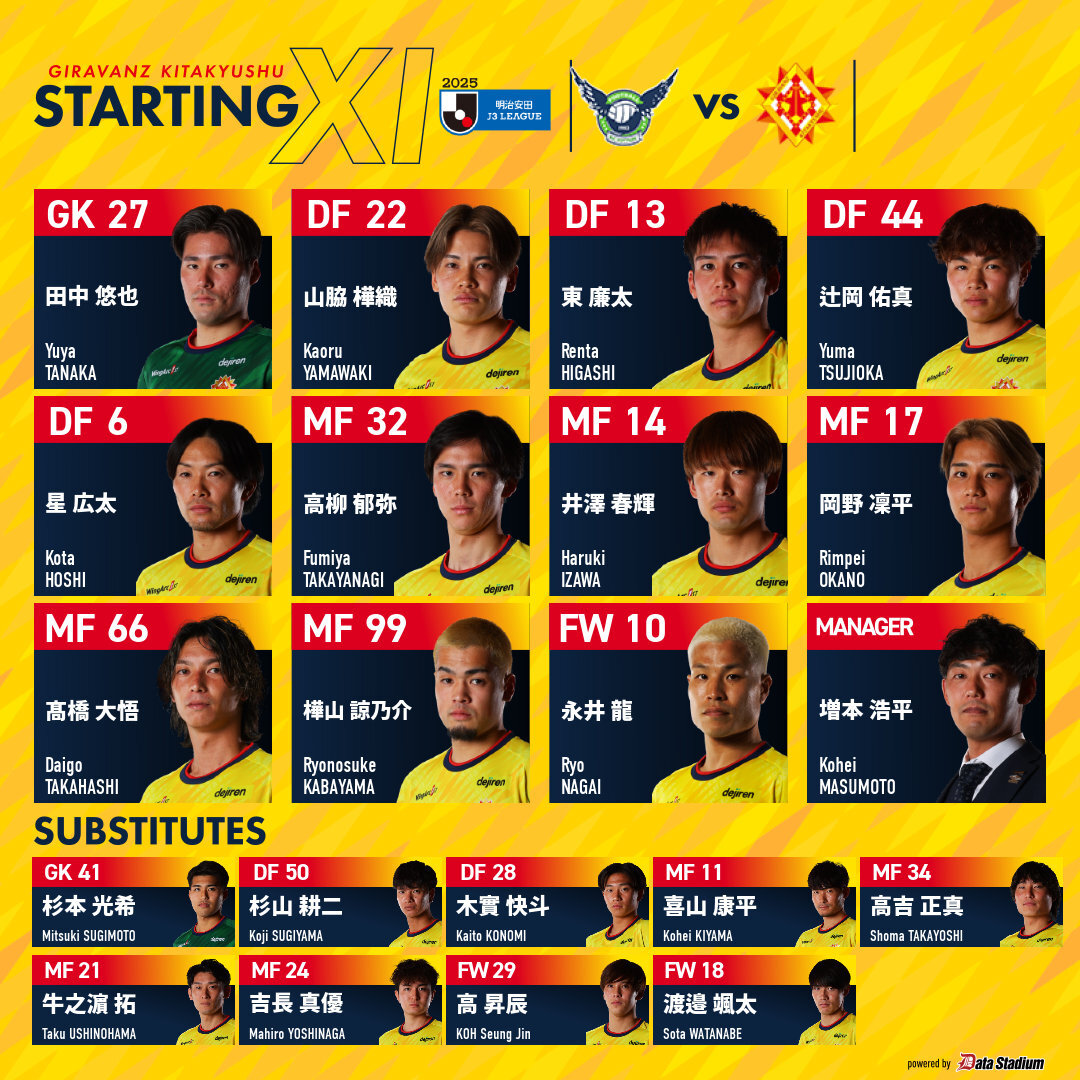 🟡STARTING LINE UP🔴 明治安田J3リーグ 第36節 #ガイナーレ鳥取 🆚 #ギラヴァンツ北九州