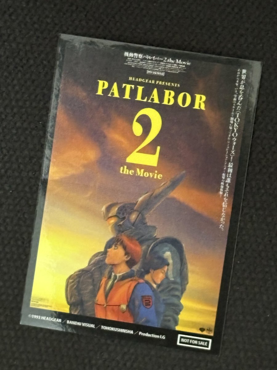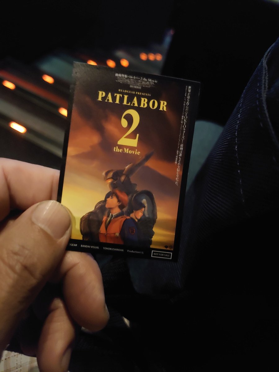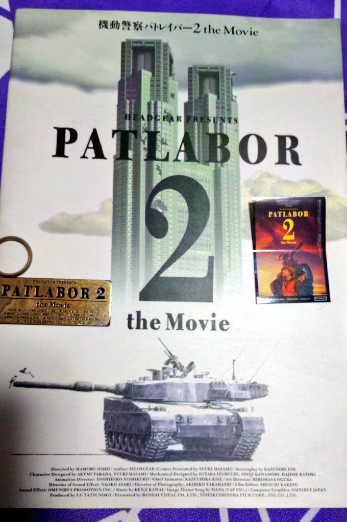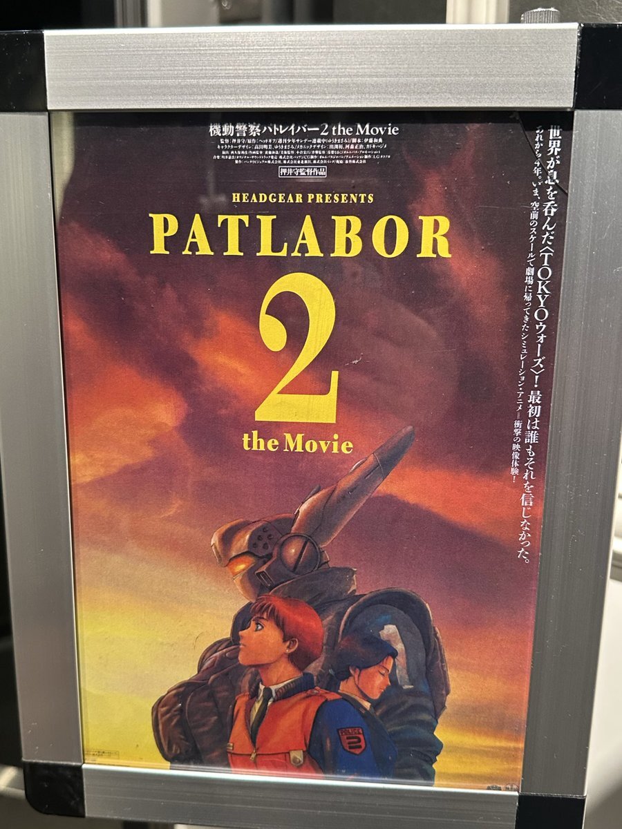 最後に、後輩氏が未見だというので #機動警察パトレイバー2 the Movie 劇場公開版音声&4K ご存知パトの中でも押井色が前面に出まくり、暗い画面に中年の長〜い語りが連続するクセ強作品ではありますが😅ひとまず楽しんでもらえた模様 今観るとまたシャレにならない感じ…? ステッカー撮りづらし pic.x.com/LVadbSwWOd