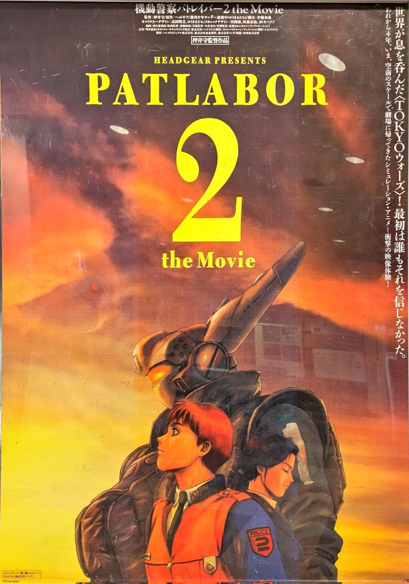 機動警察パトレイバー2 the movie を観ました 何とオリジナル版の上映!アクションの介在なしで、他に類を見ない緊迫感を演出する押井監督の手腕には感嘆させられる 名作は色褪せないが、こういう成熟したアニメがまた出てこないのだろうか… 売り上げ出ないか… #機動警察パトレイバー2 pic.x.com/SCISGyNM0f